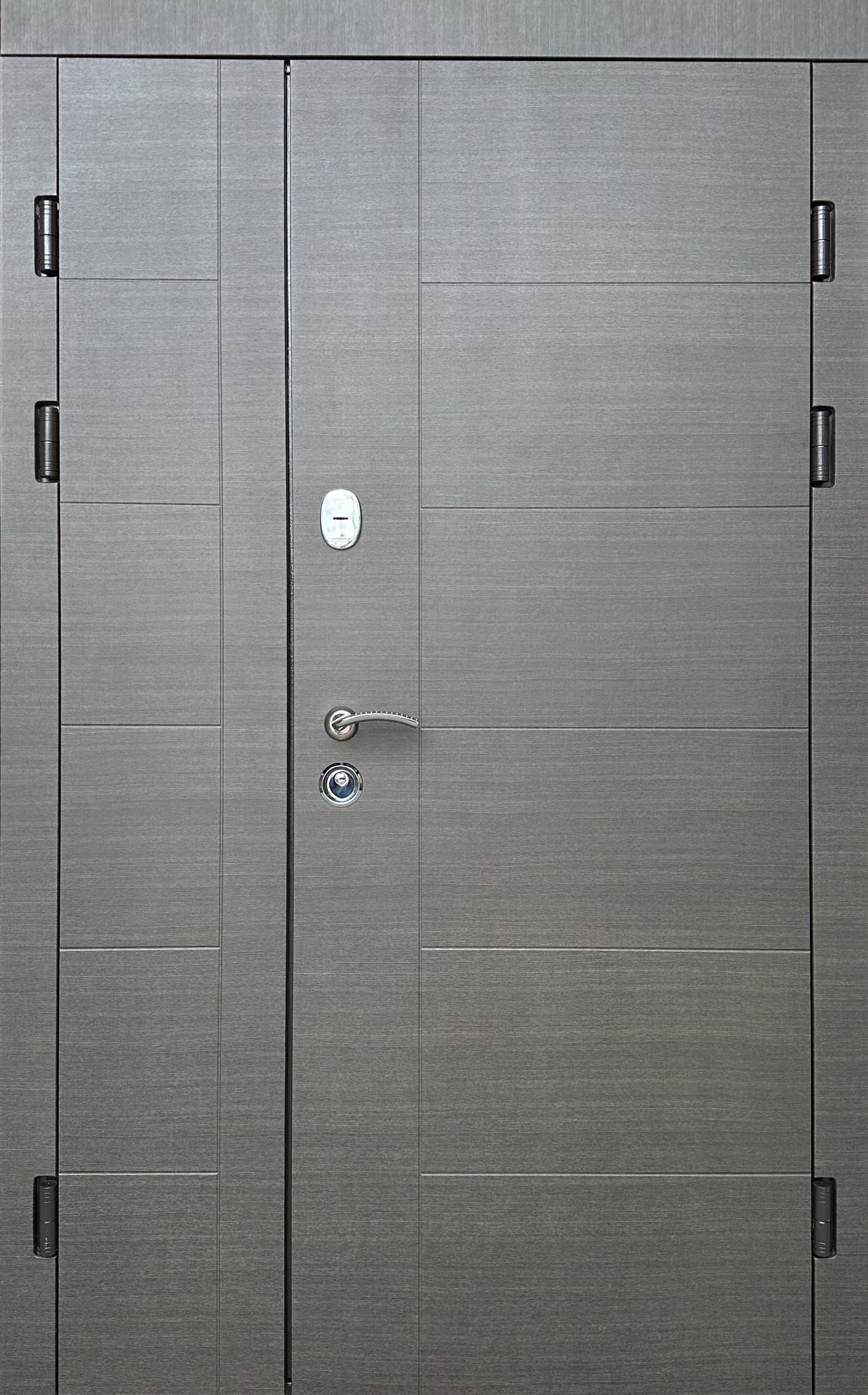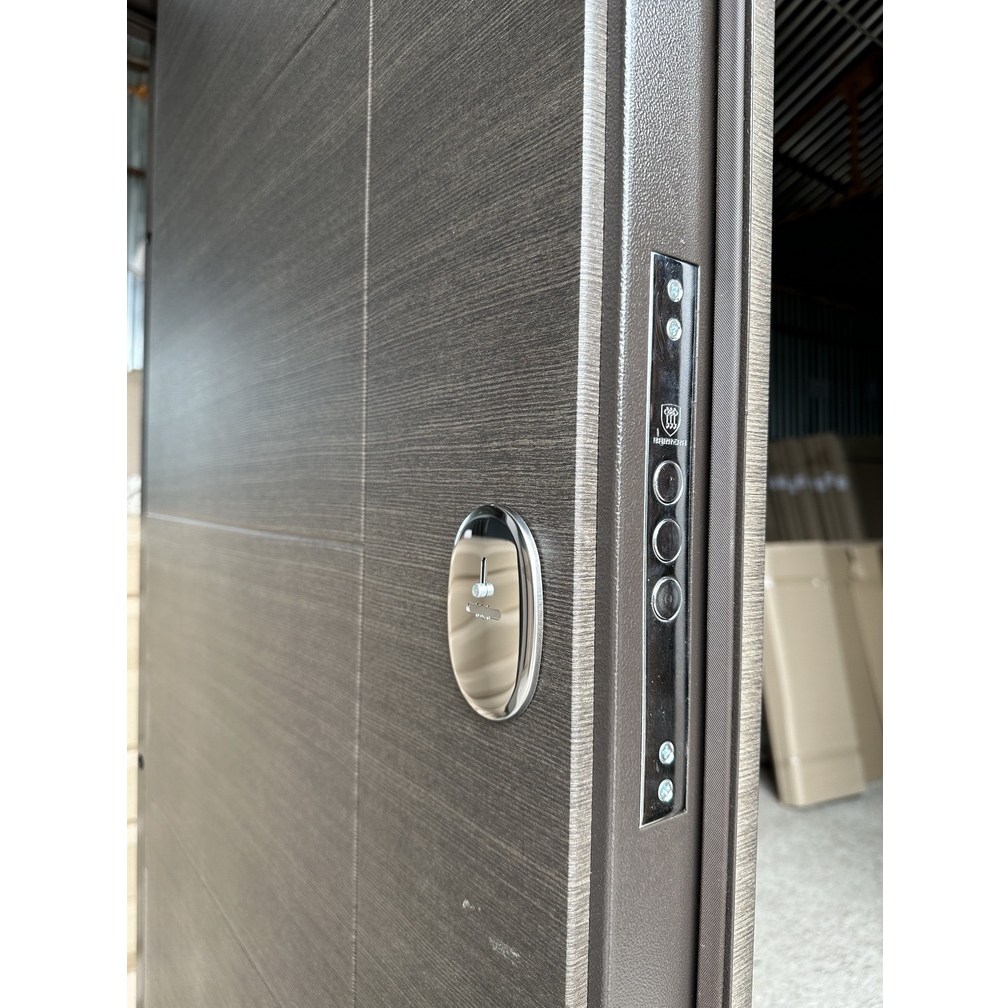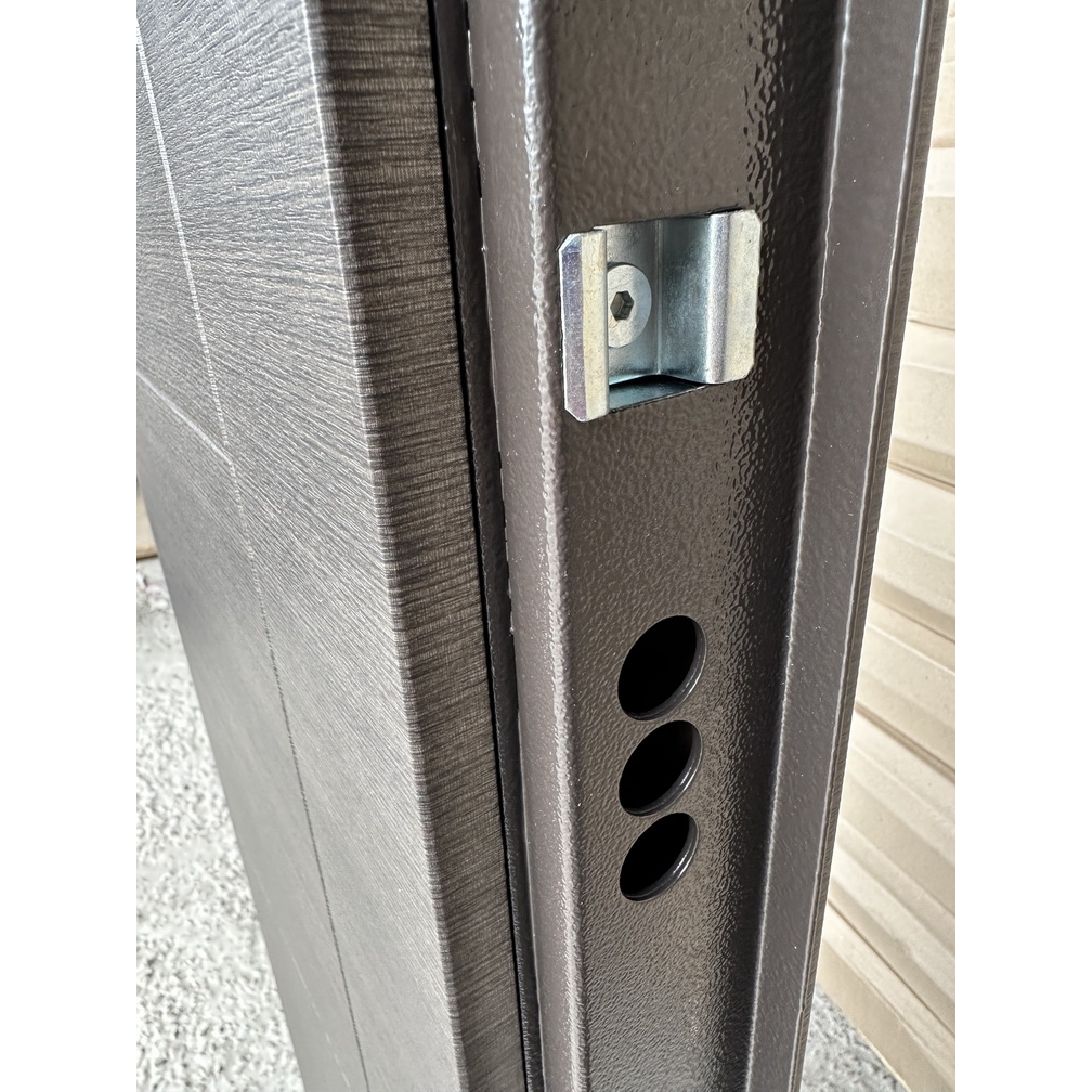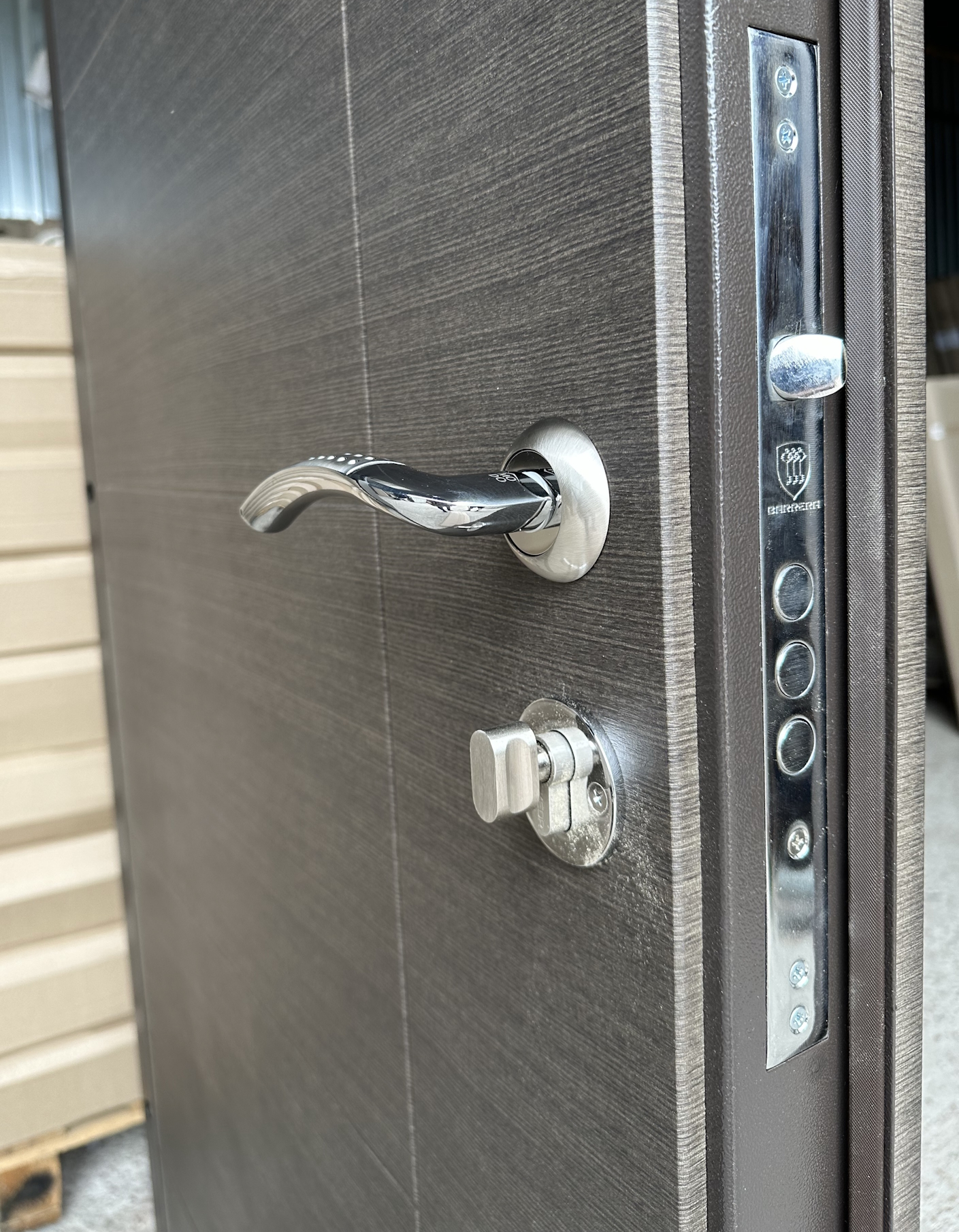 | Фурнітура | 3 зовнішні петлі на прихованих підшипниках, ручка на розетті, утоплена броненакладка, євроущільнювачі |