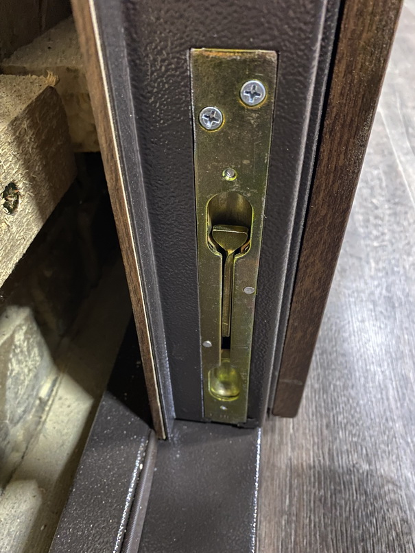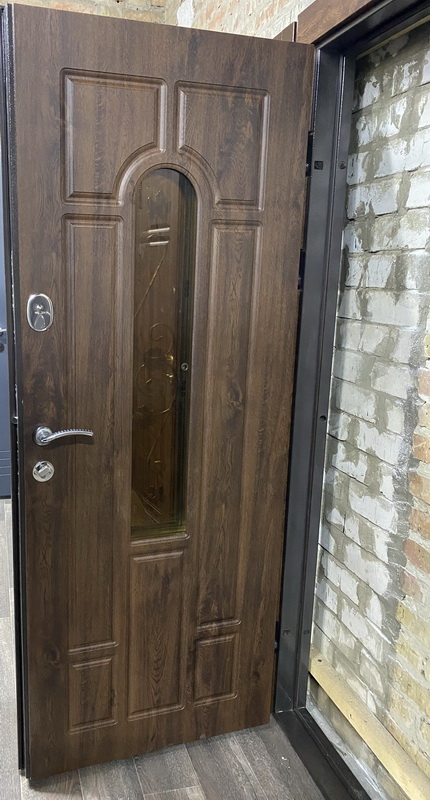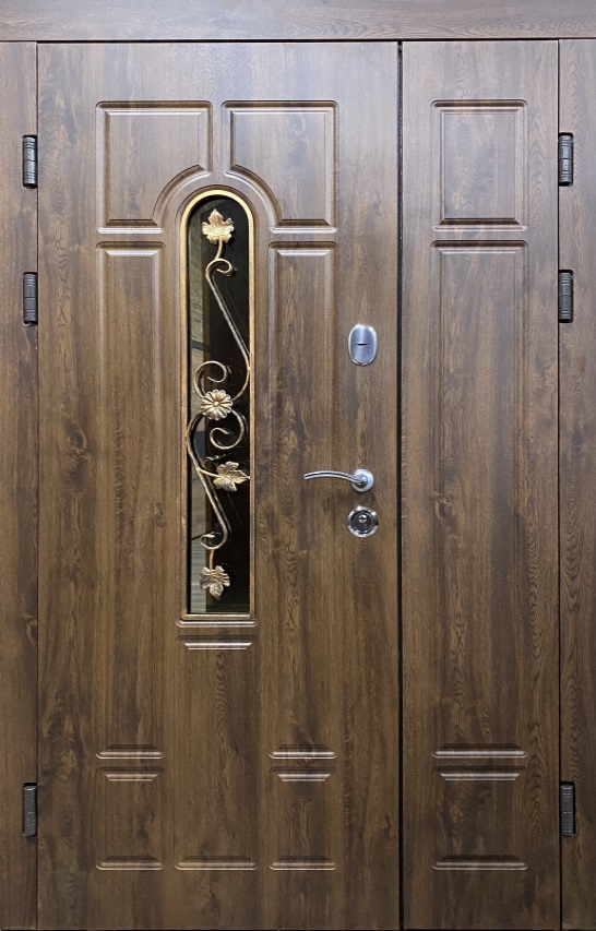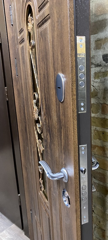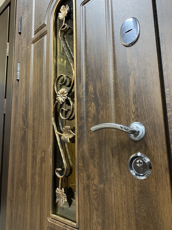 | Фурнітура | 3 зовнішні петлі на прихованих підшипниках, вічко, ручка на розетті, утоплена броненакладка, євроущільнювачі |