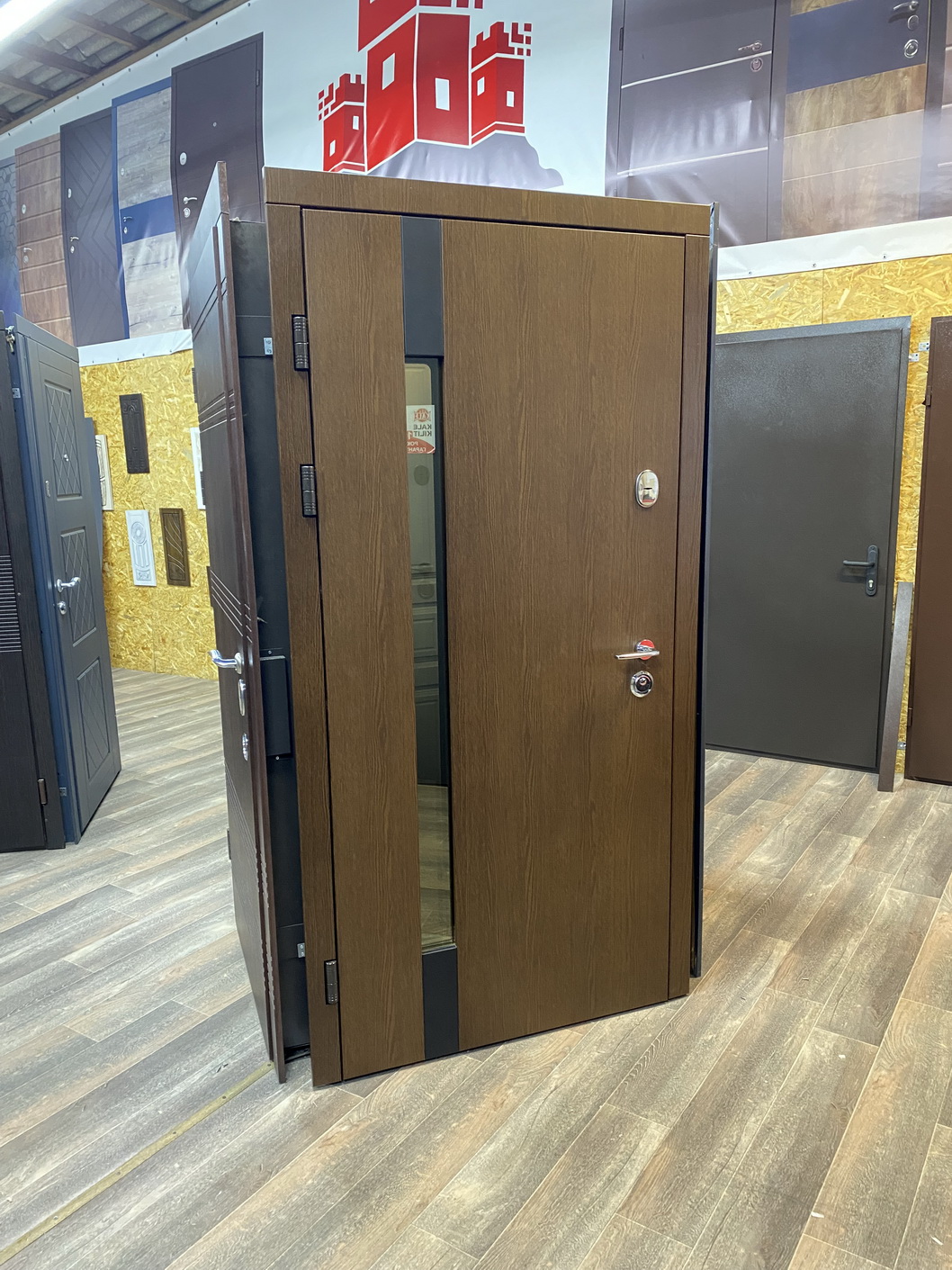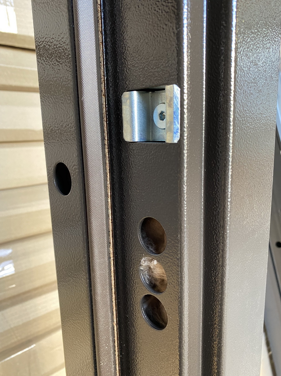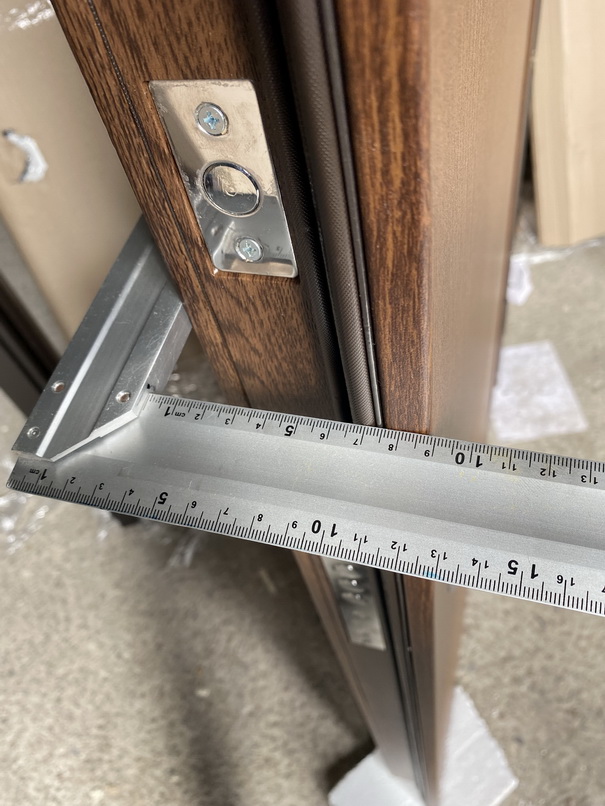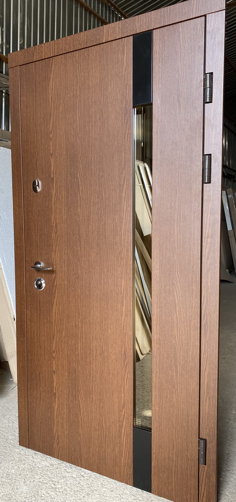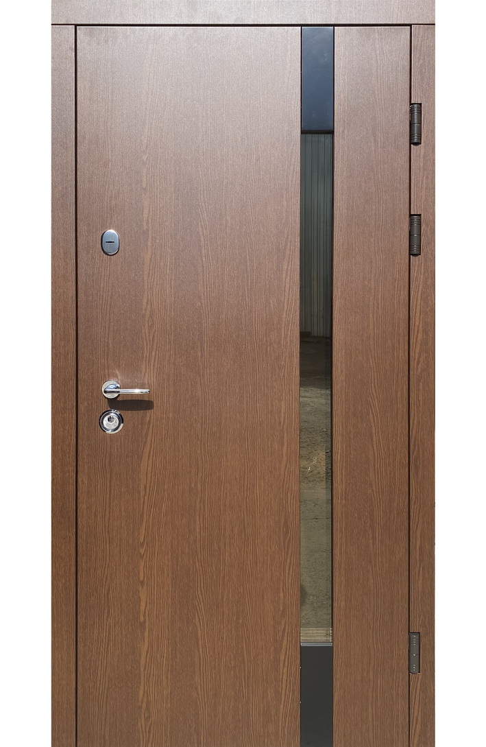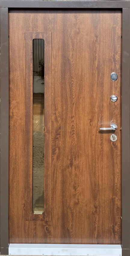 | Фурнітура | 3 петлі, ручка на розетті, нічний засув, ексцентрик, утоплена броненакладка, поріг з нерж. сталі, торець полотна зашитий МДФ, терморозрив (коркове дерево) |