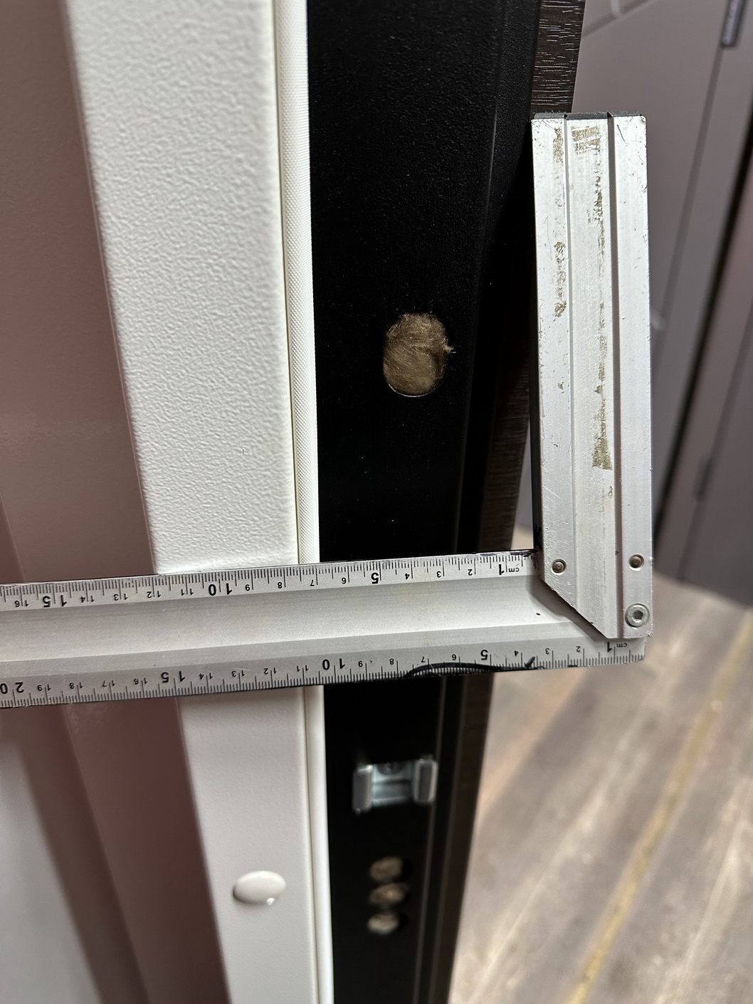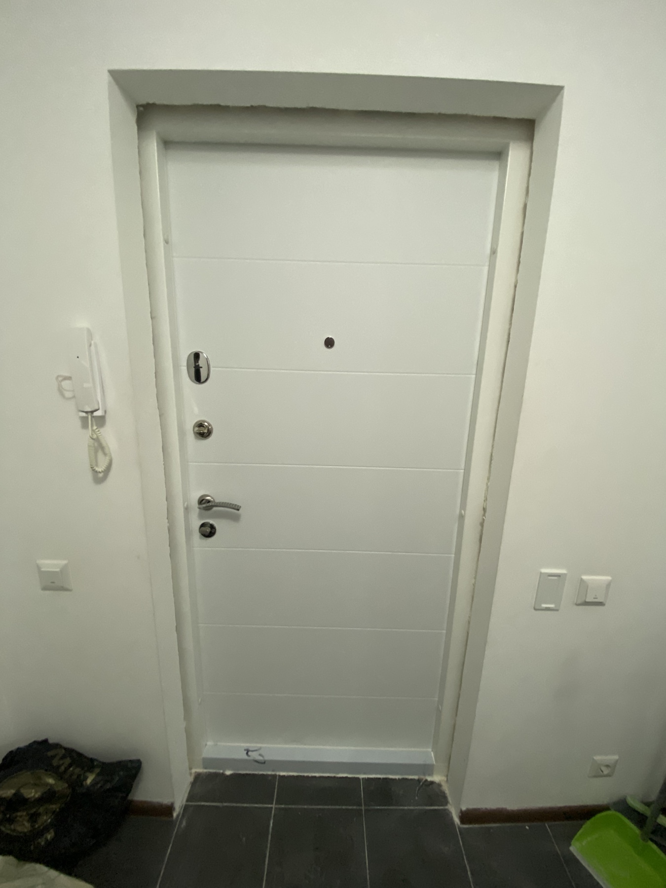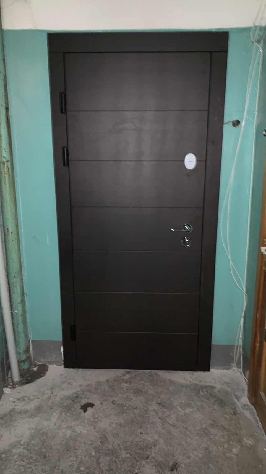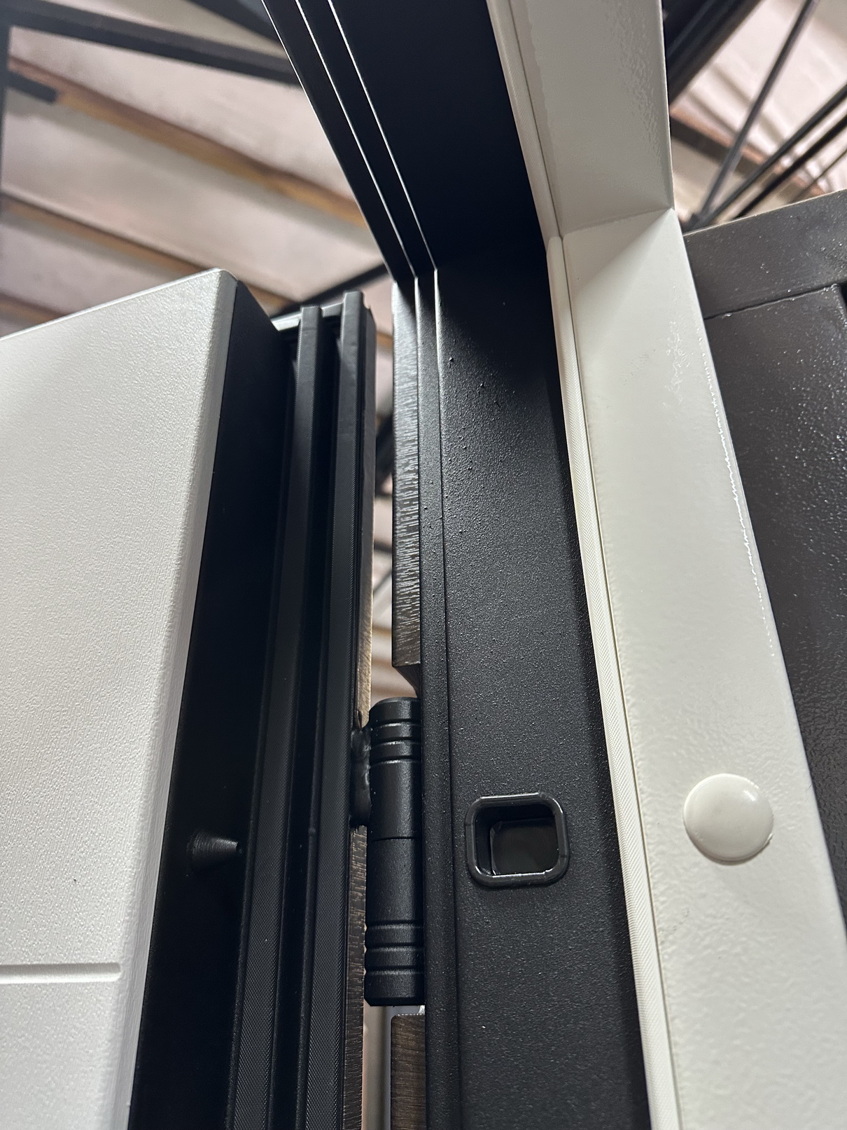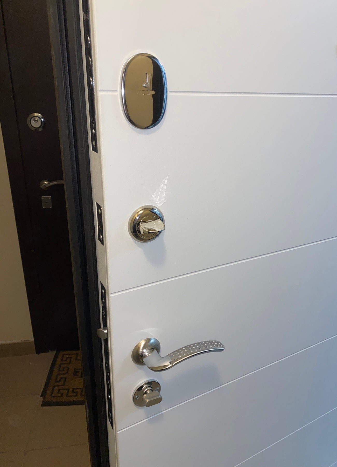 | Фурнітура | 3 петлі, ручка на розетті, нічний засув, ексцентрик, утоплена броненакладка, поріг з нерж. сталі, торець полотна зашитий МДФ, рама 2 кольори з терморозривом, БЕЗ ВІЧКА |