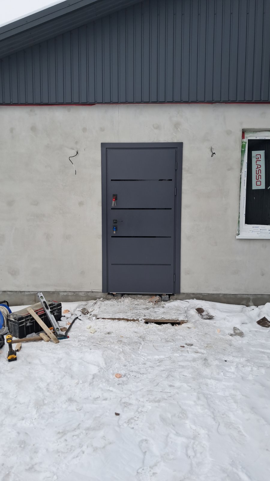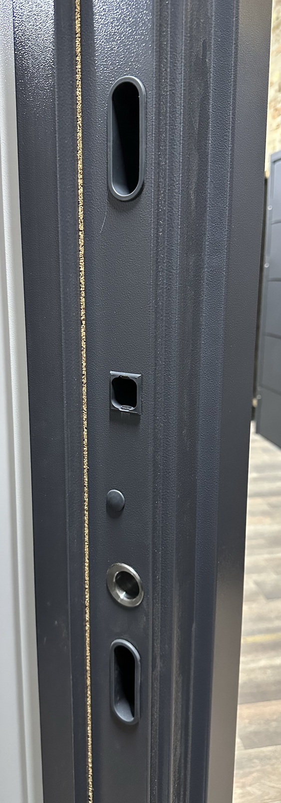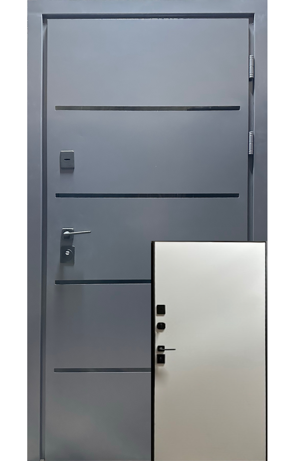 | Фурнітура | 3 петлі, антизрізи, ручка на розетті, євроущільнювачі, ексцентрик, поріг з нерж.сталі, чорна фурнітура. |
