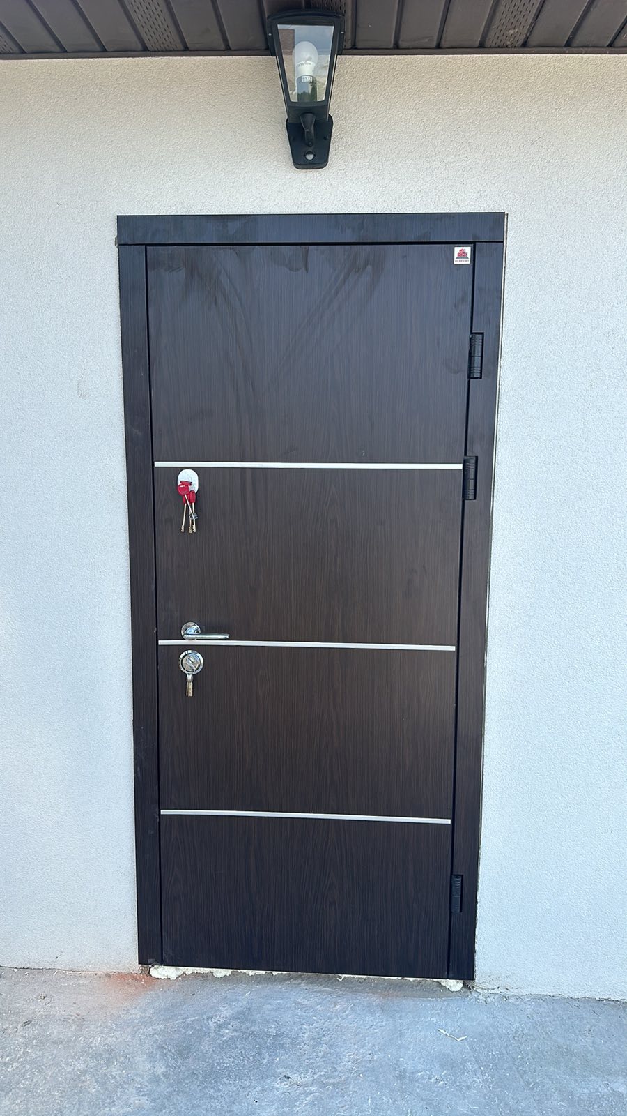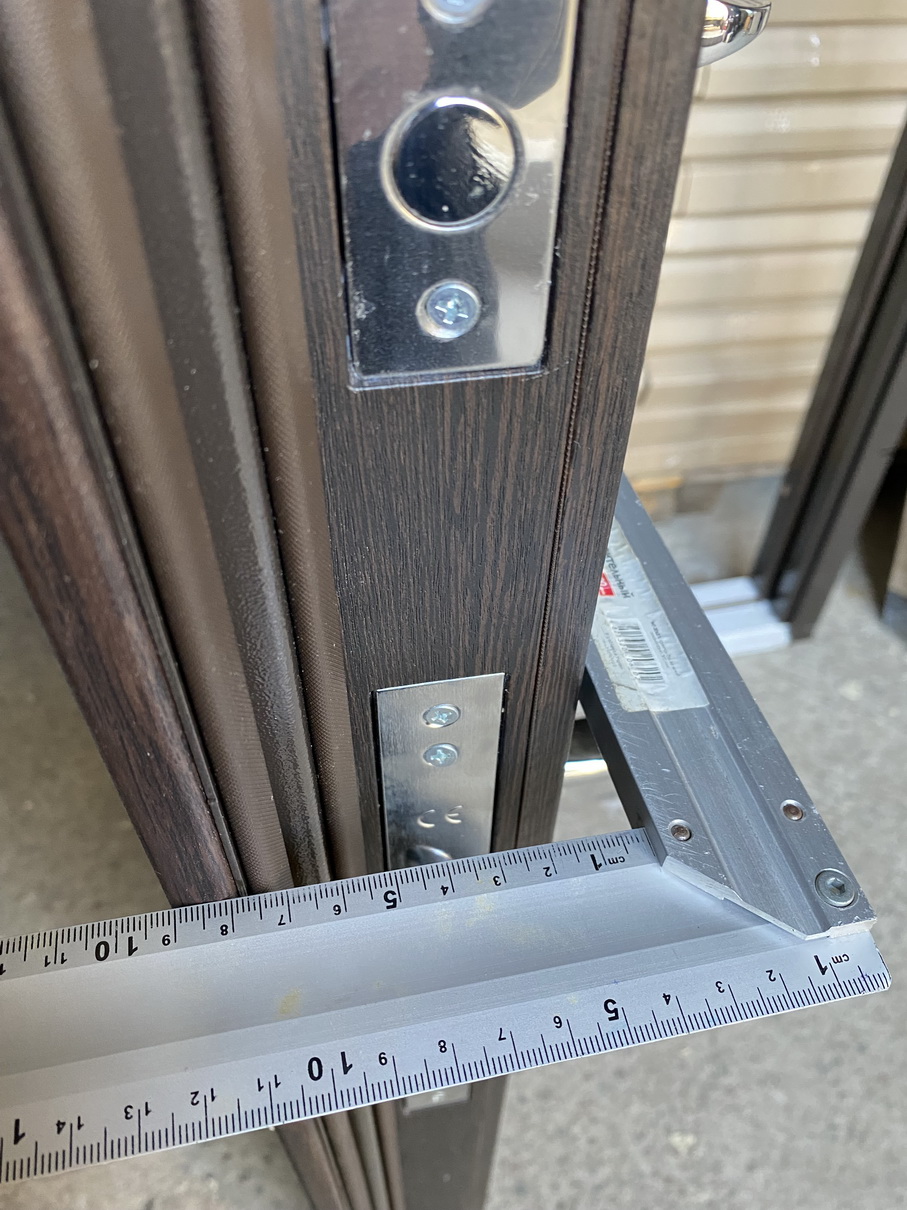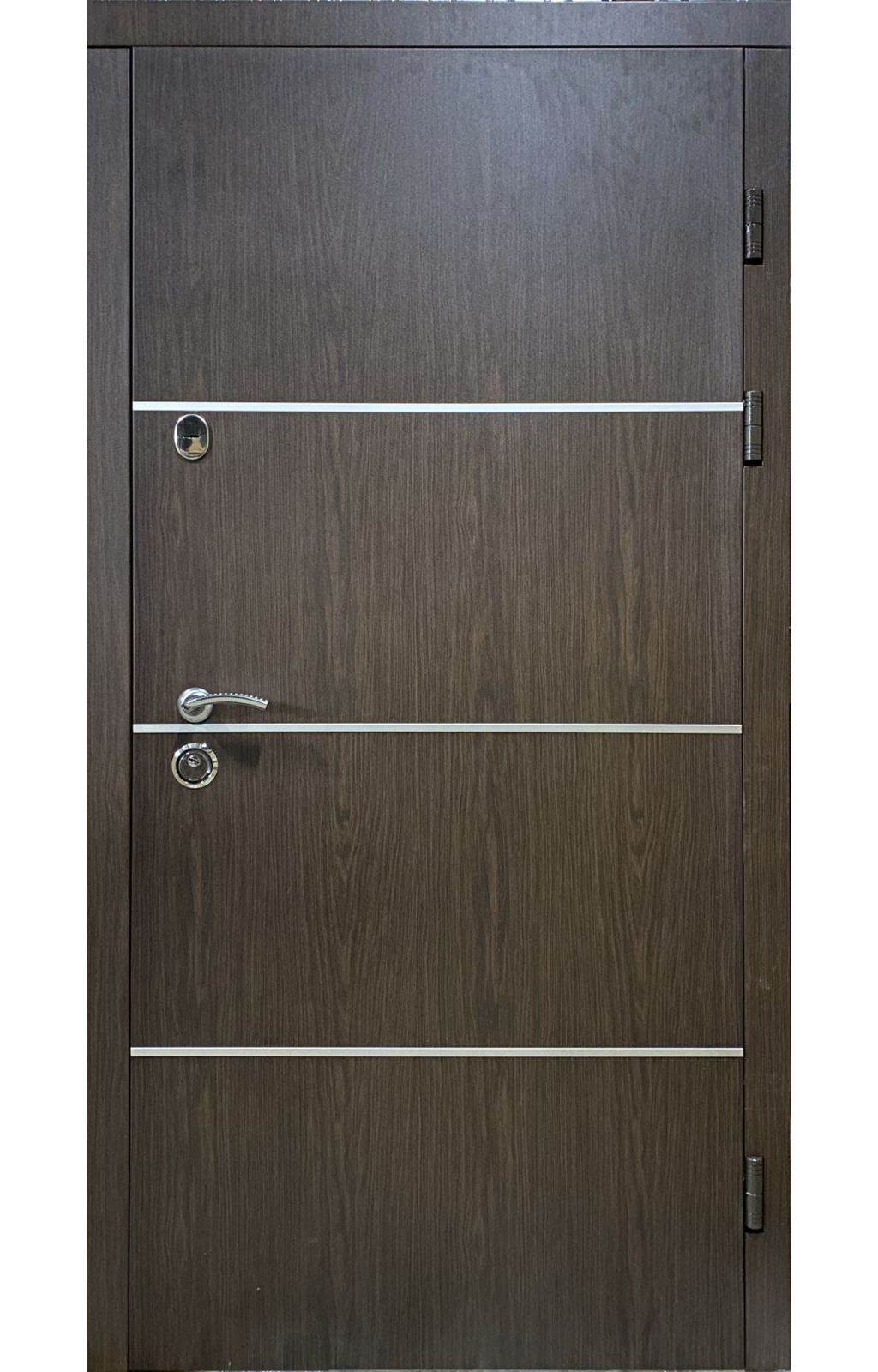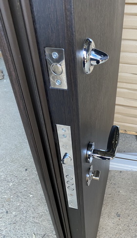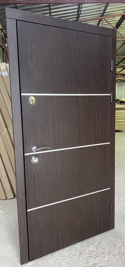 | Фурнітура | 3 петлі, ручка на розетті, нічний засув, ексцентрик, утоплена броненакладка, поріг з нерж. сталі, торець полотна зашитий МДФ, терморозрив (коркове дерево) |
