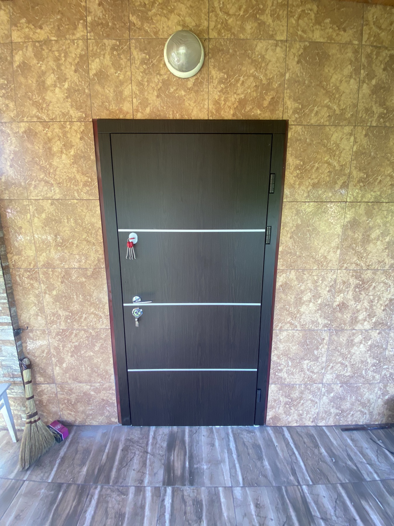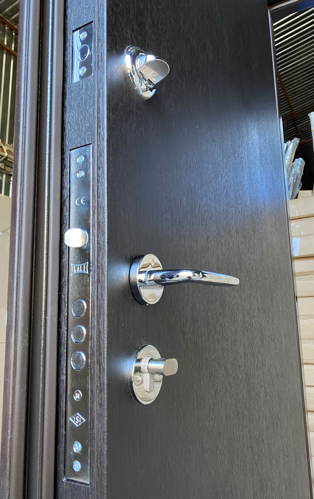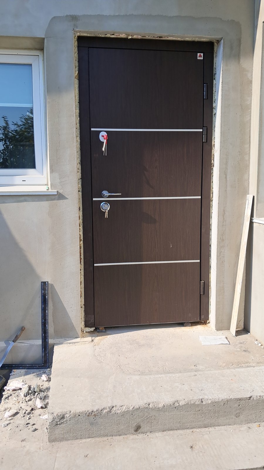 | Фурнітура | 3 петлі, ручка на розетті, нічний засув, ексцентрик, утоплена броненакладка, поріг з нерж. сталі, торець полотна зашитий МДФ, терморозрив (коркове дерево) |