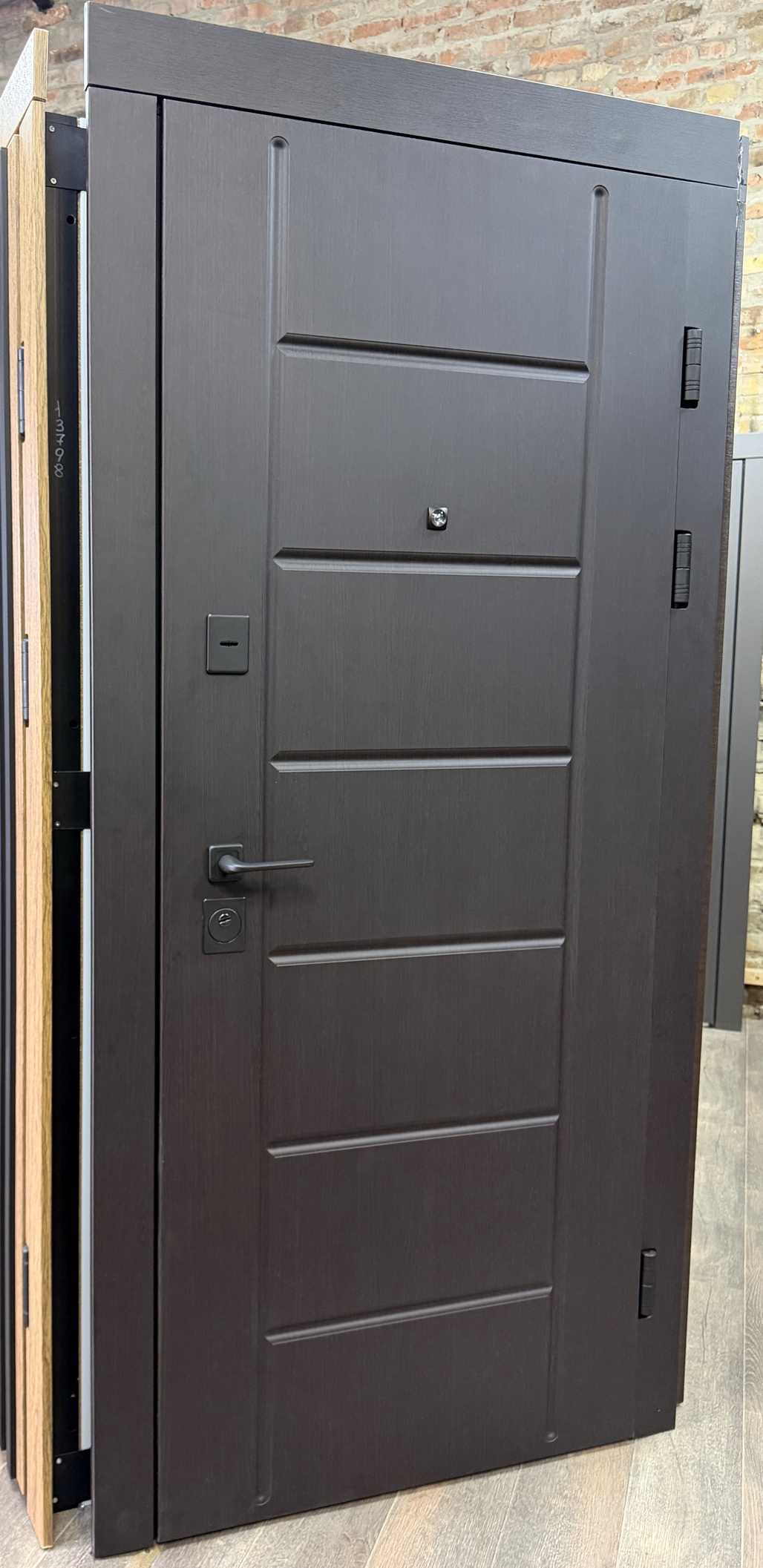 | Фурнітура | 3 петлі, ручка на розетті, ексцентрик,утоплена броненакладка, Чорна квадратна фурнітура |