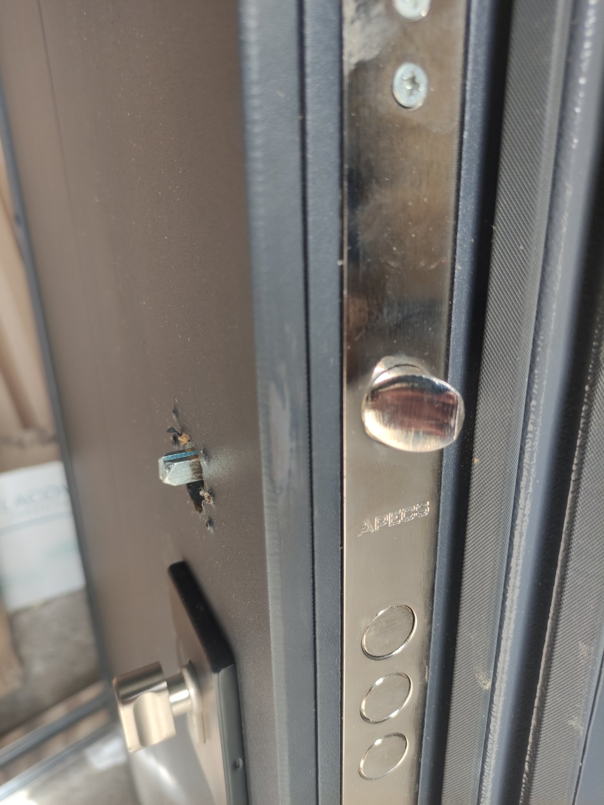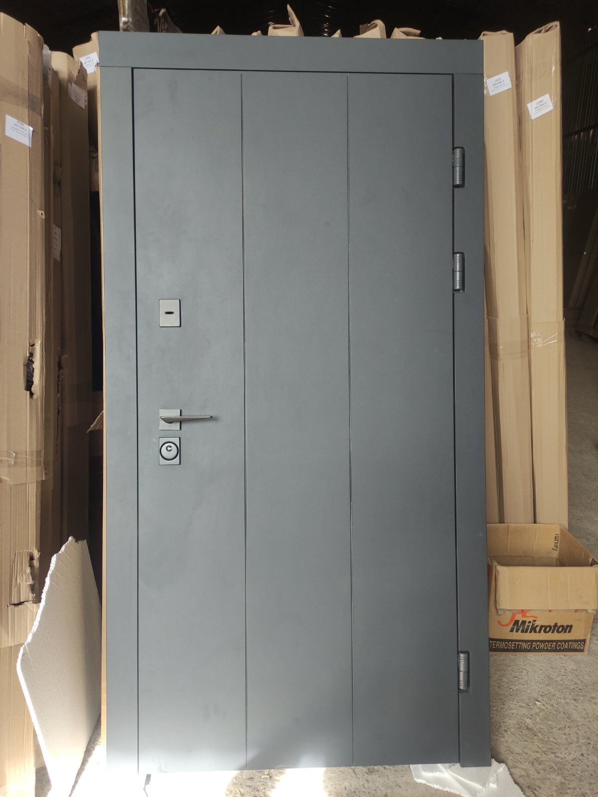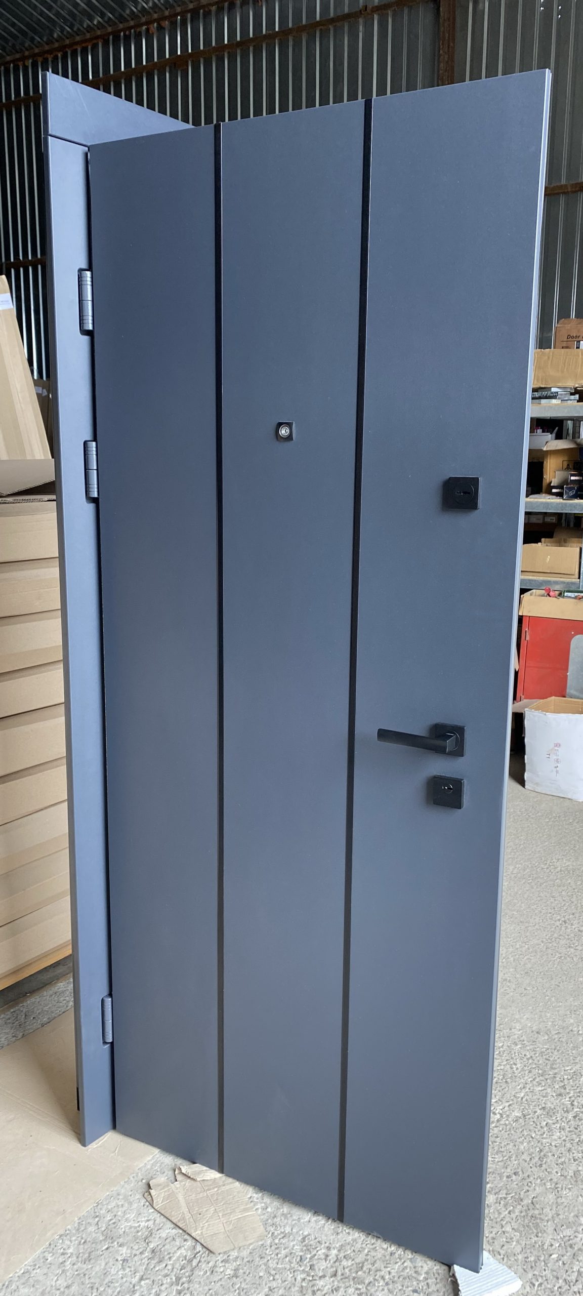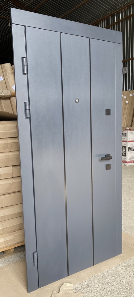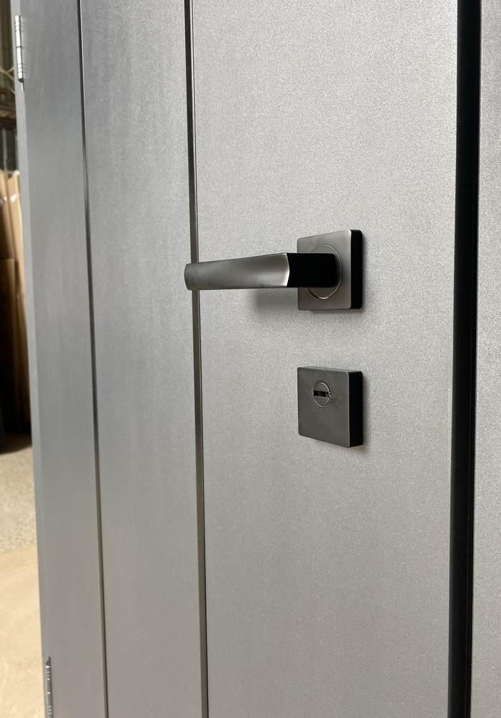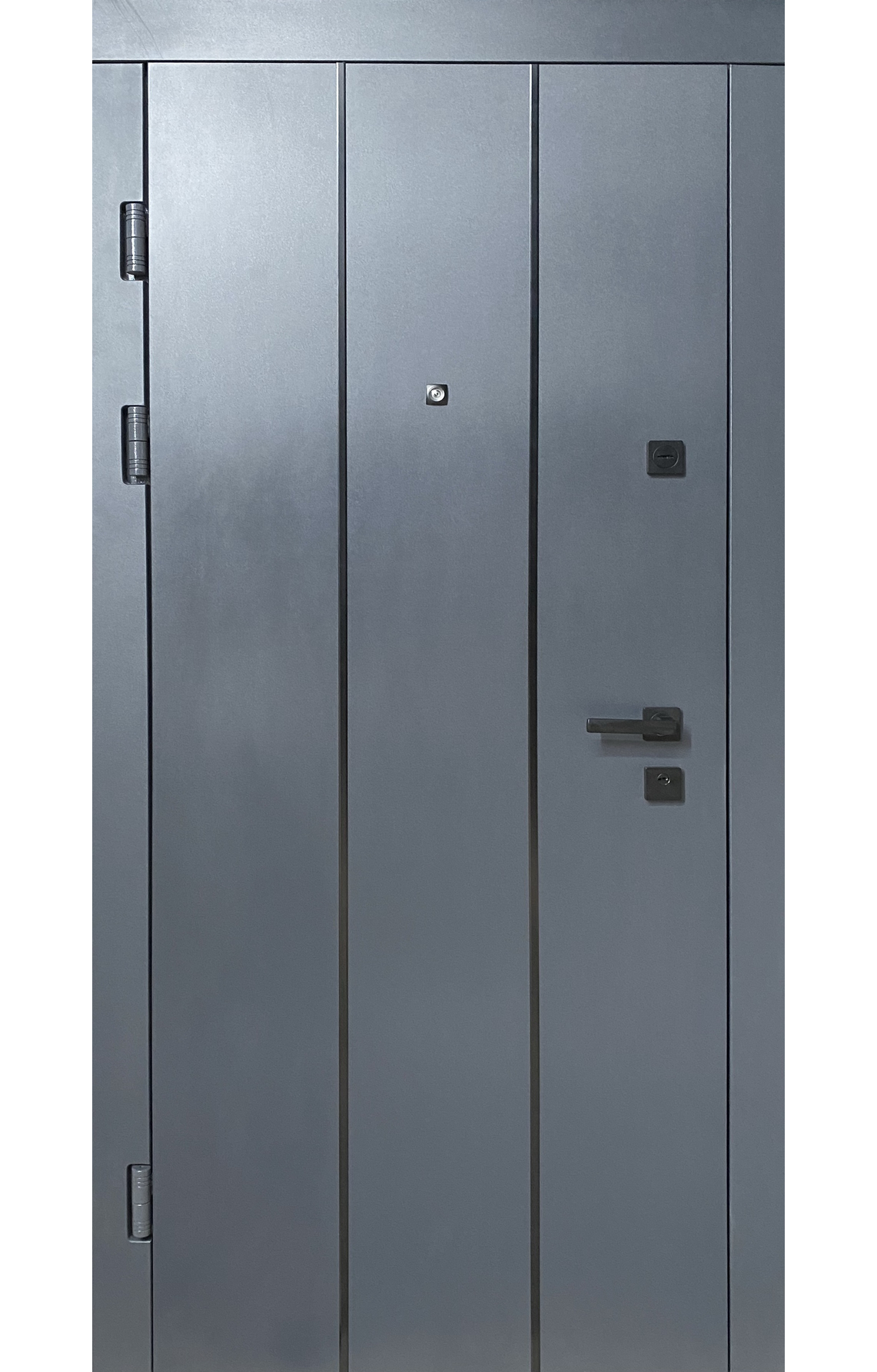 | Фурнітура | 3 петлі, ручка на розетті, нічний засув, ексцентрик, утоплена броненакладка, поріг з нерж. сталі, торець полотна зашитий МДФ |