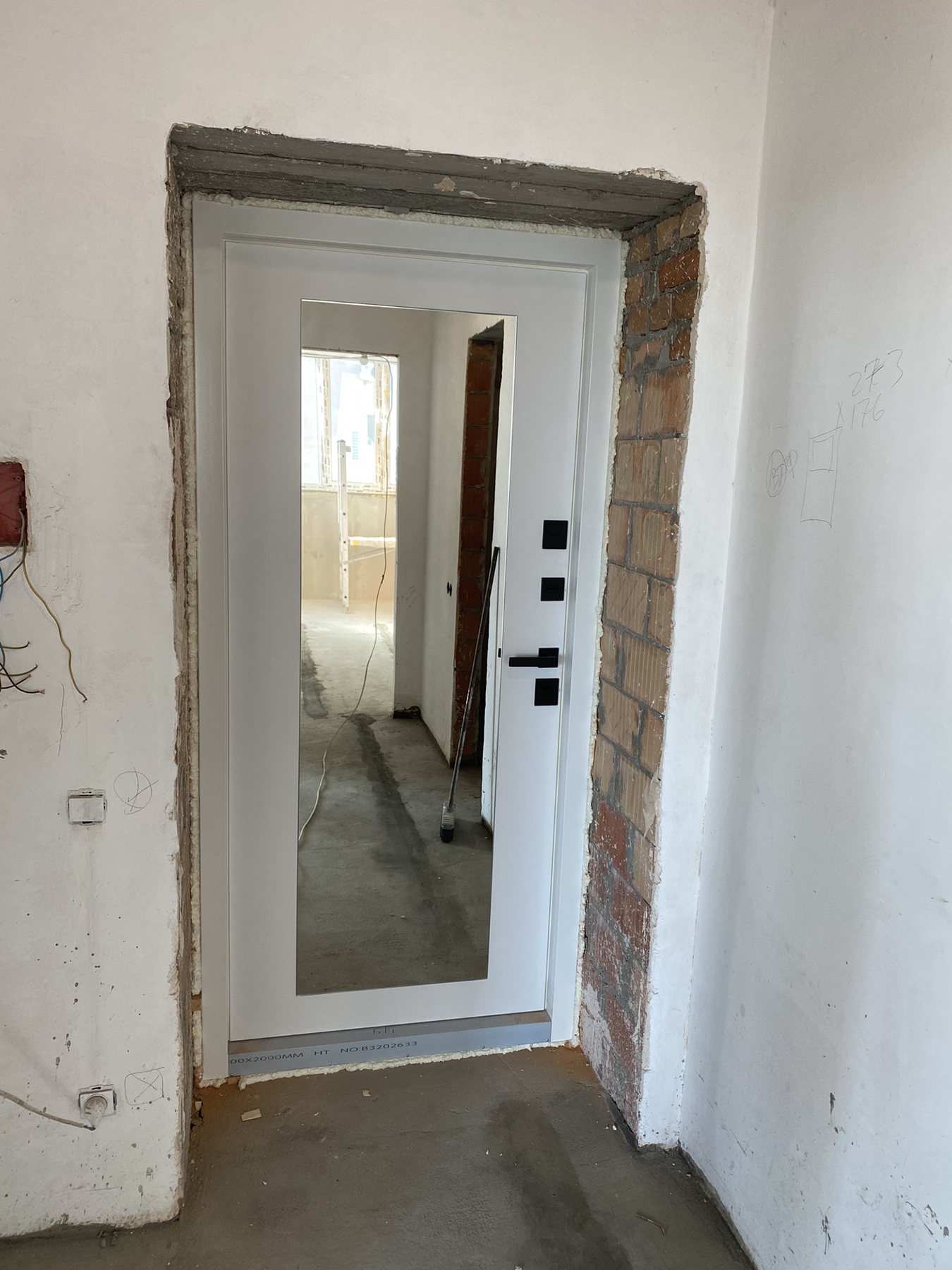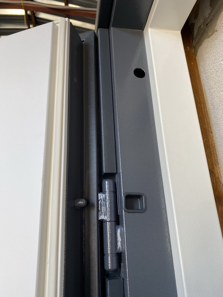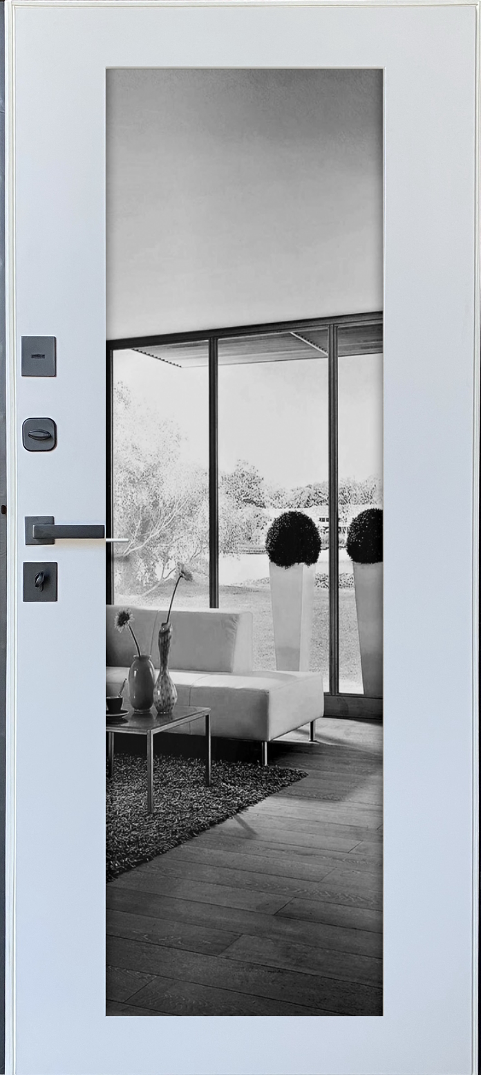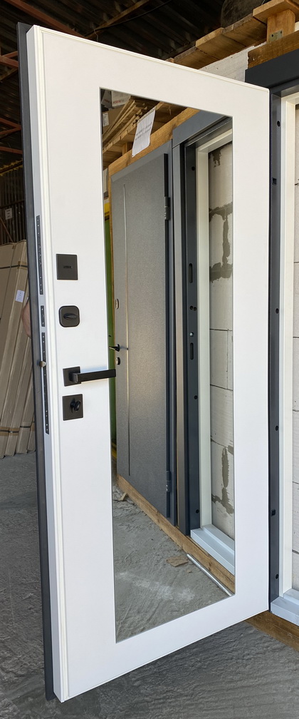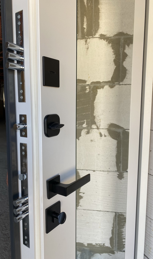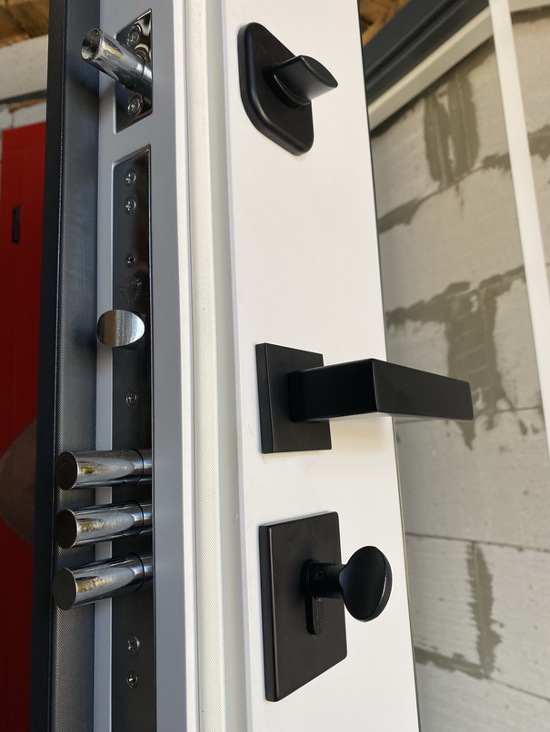 | Фурнітура | 3 зовнішні петлі, вічко, ручка на розетті, нічний засув, посилення в рамі, Чорна квадратна фурнітура |