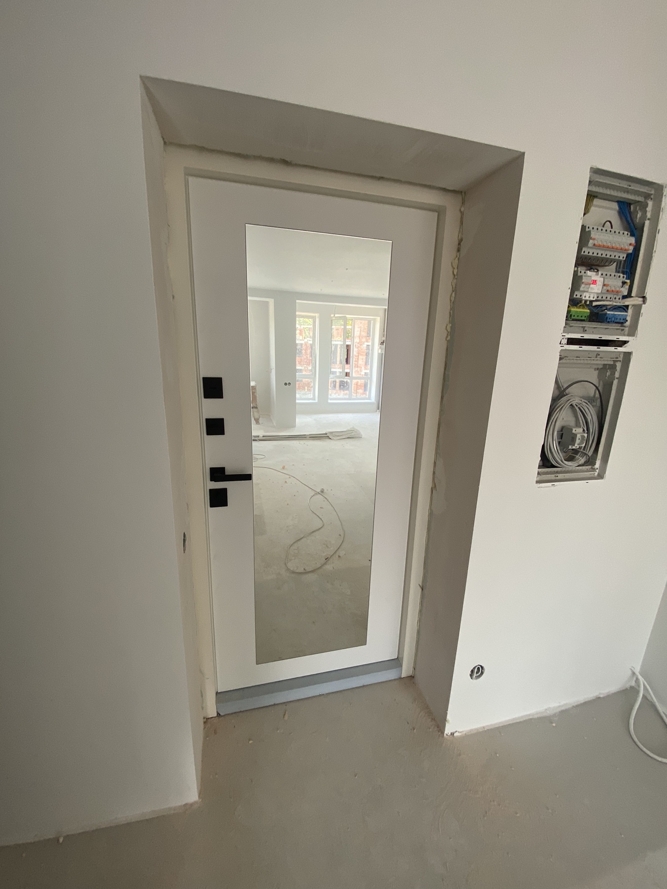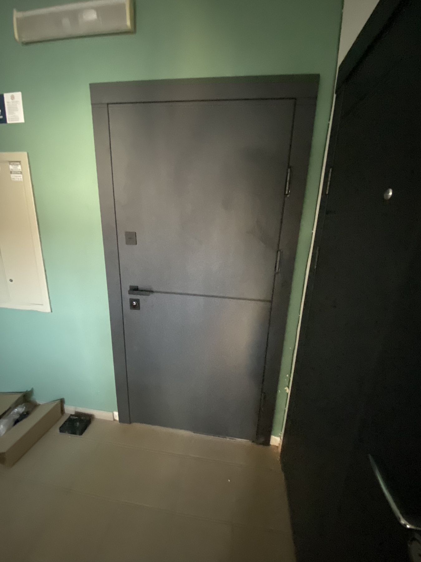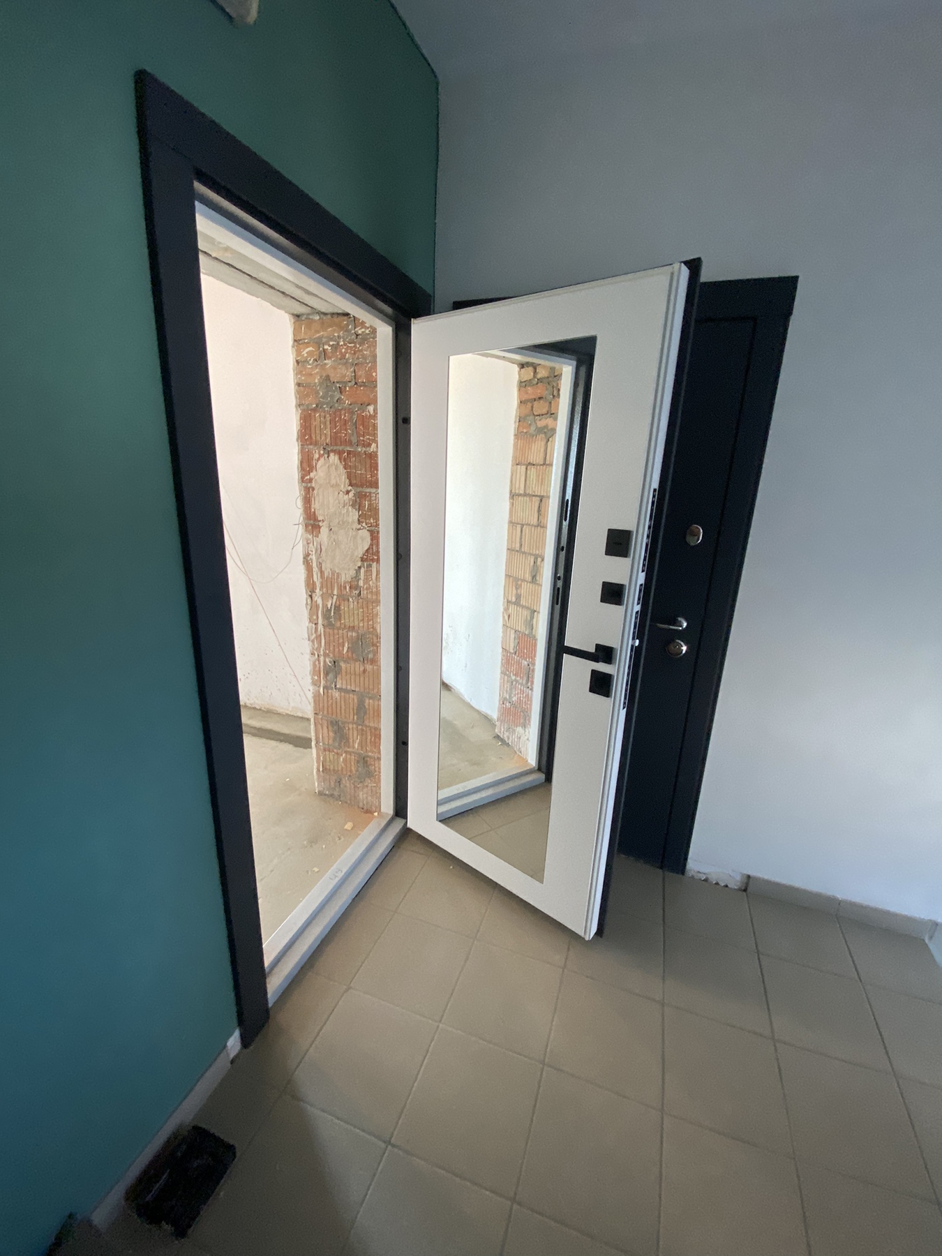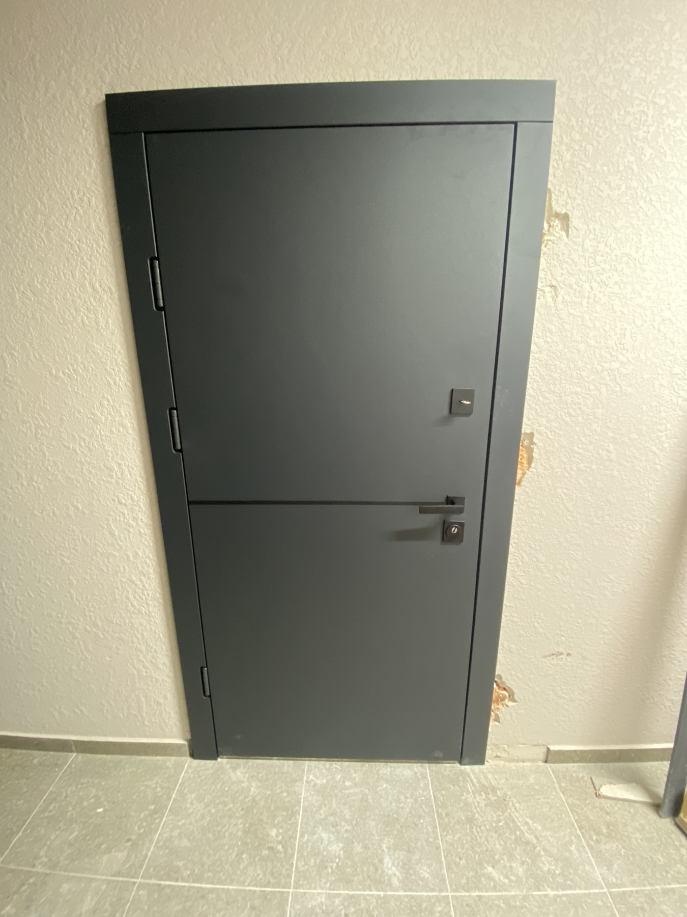 | Фурнітура | 3 зовнішні петлі, вічко, ручка на розетті, нічний засув, посилення в рамі, Чорна квадратна фурнітура |