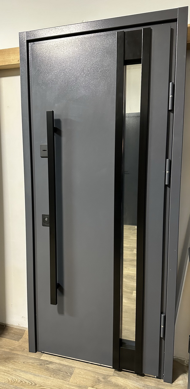 ЛЮКС сіра RAL 7024 Метал – МДФ (зі склопакетом)