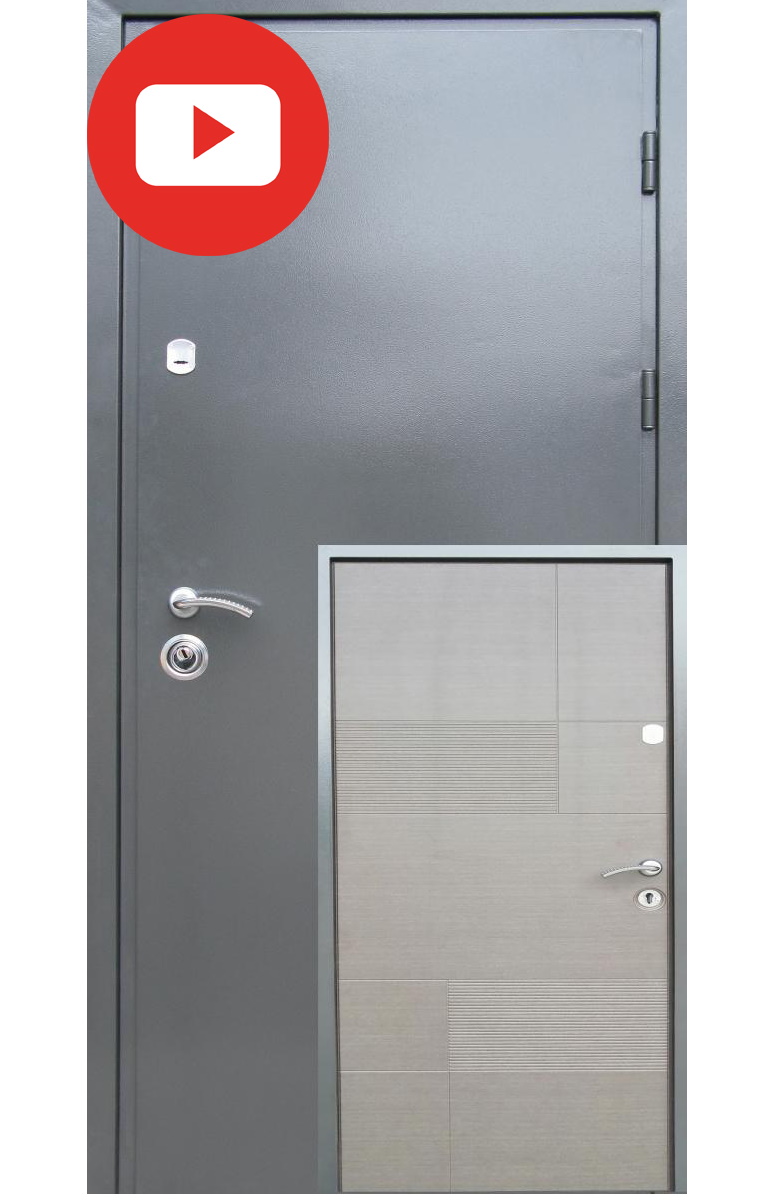 | Фурнітура | 3 петлі, антизрізи, ручка на розетті, євроущільнювачі, утоплена броненакладка, зворотні планки, Терморозрив в рамі |
