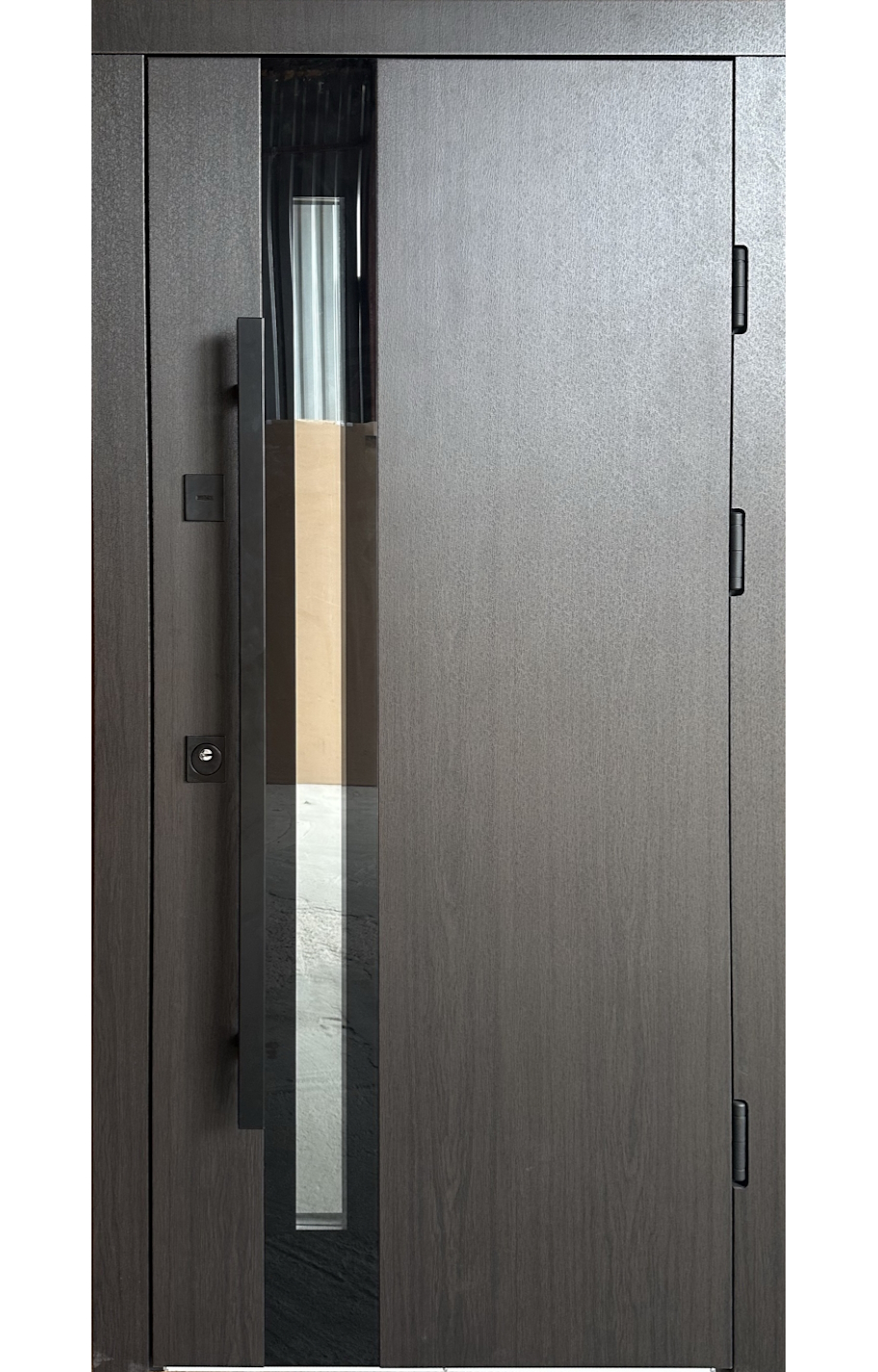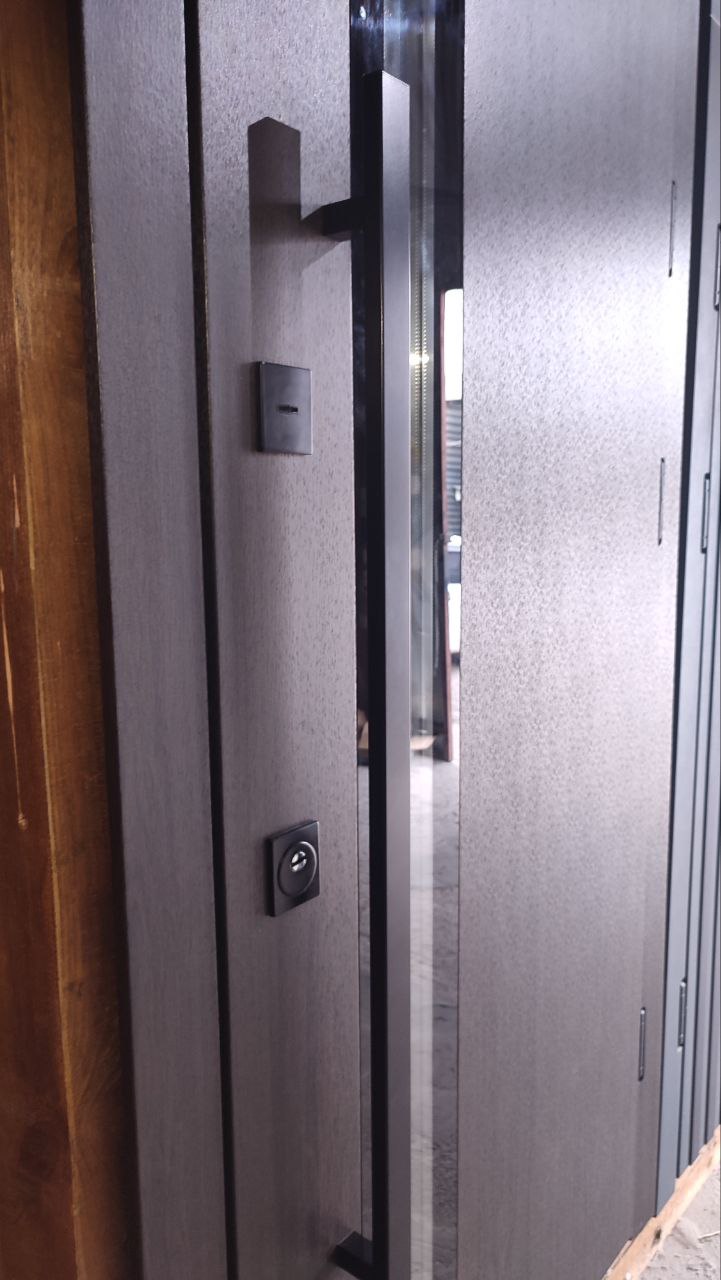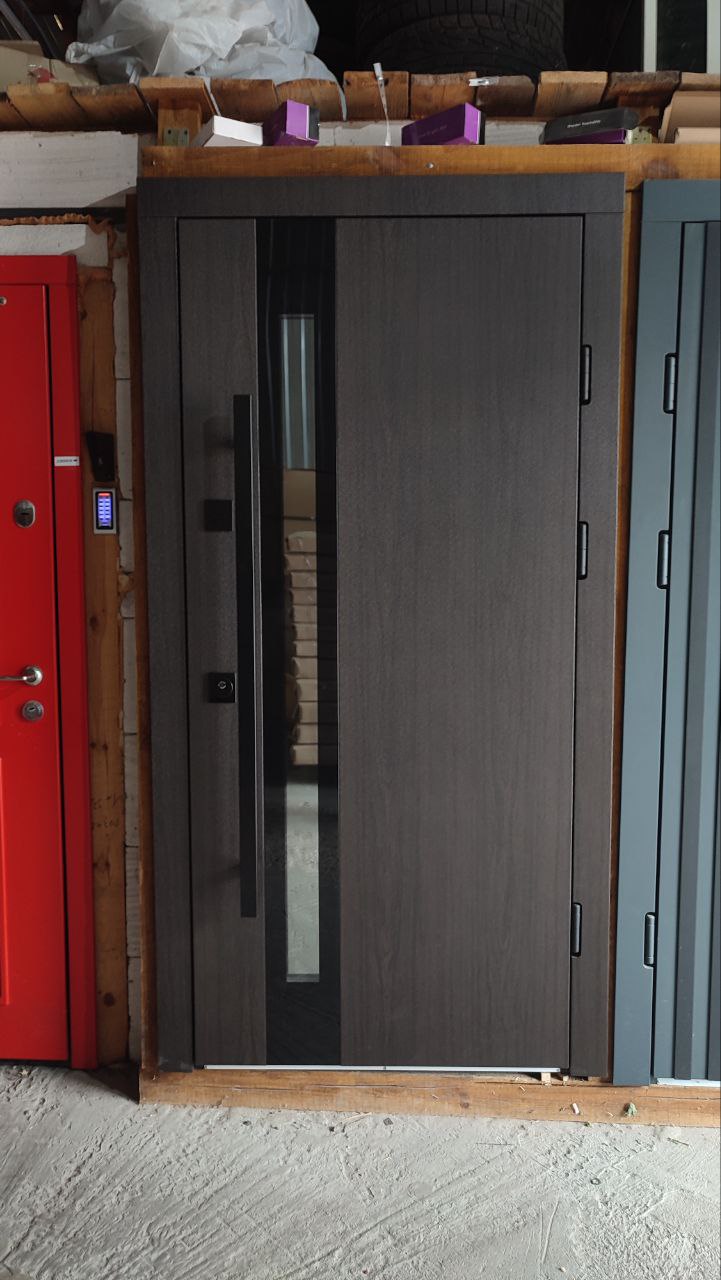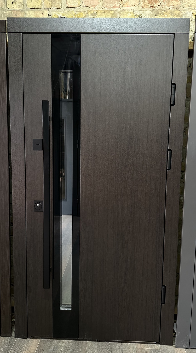 | Фурнітура | 3 зовнішні петлі, антизрізи, Чорна фурнітура, ручка труба чорна, утоплена броненакладка, терморозрив на рамі (пробка 4 мм), ексцентрик, поріг з нержавіючої сталі |