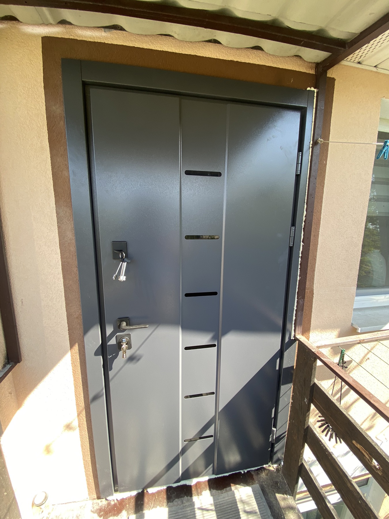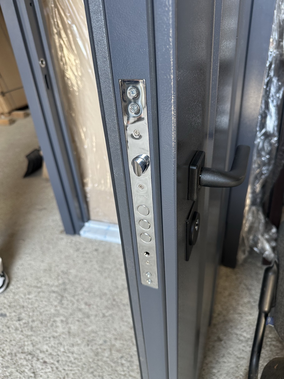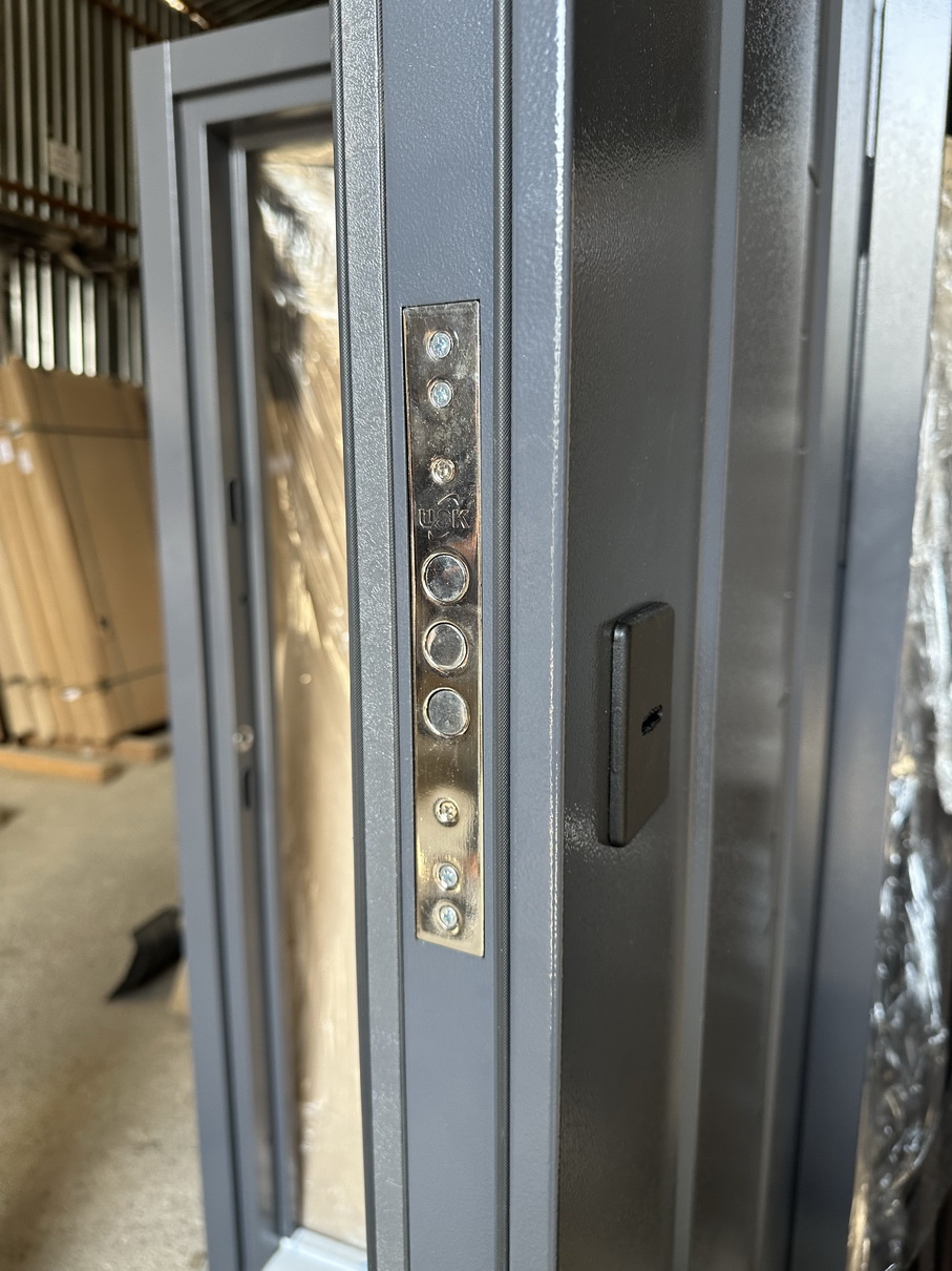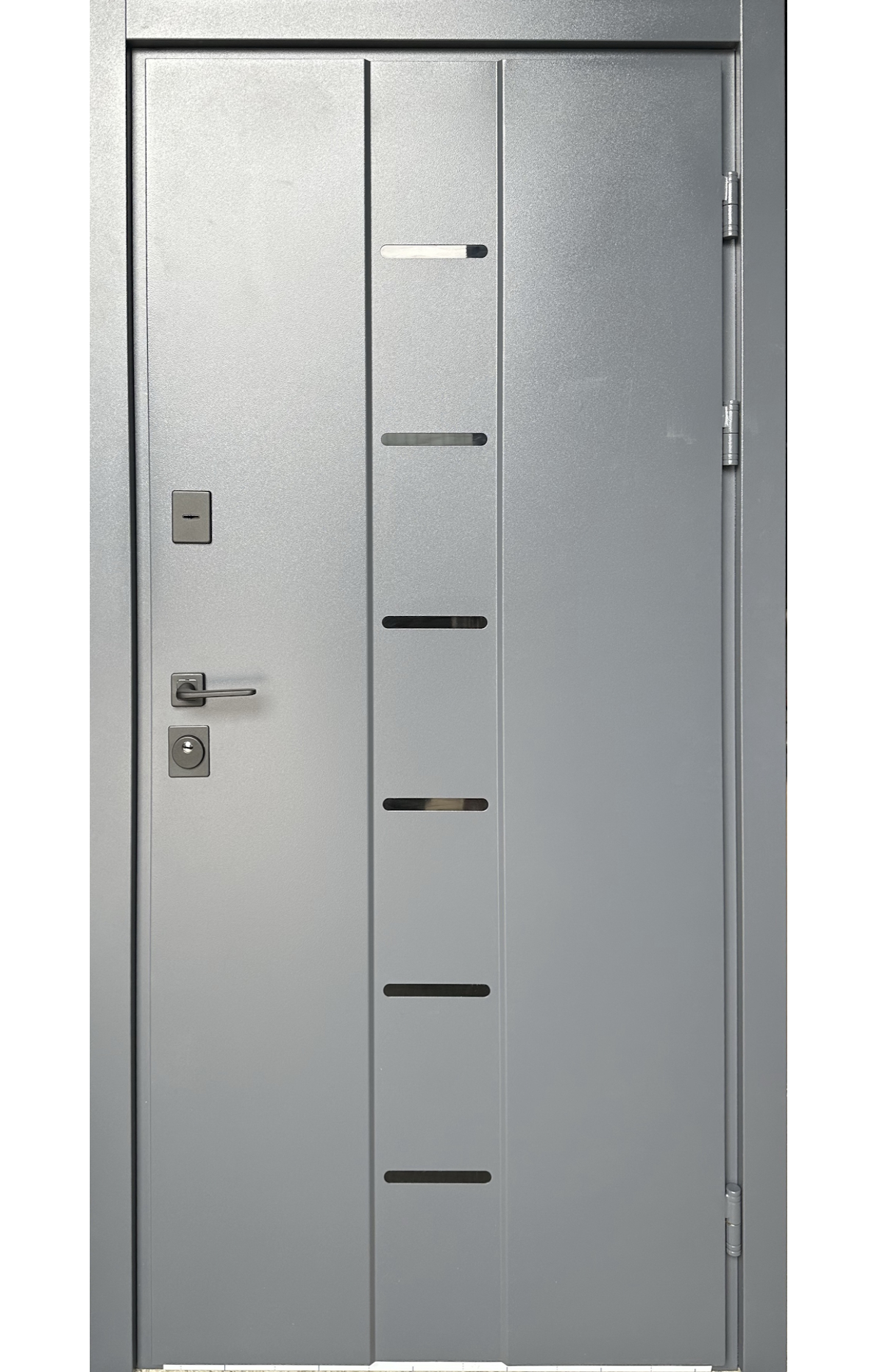 | Фурнітура | 3 петлі, антизрізи, ручка на розетті, євроущільнювачі, ексцентрик, поріг з нерж.сталі, чорна фурнітура. |