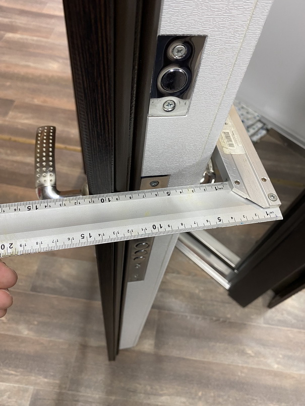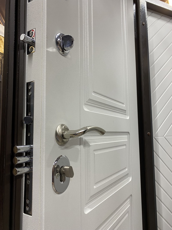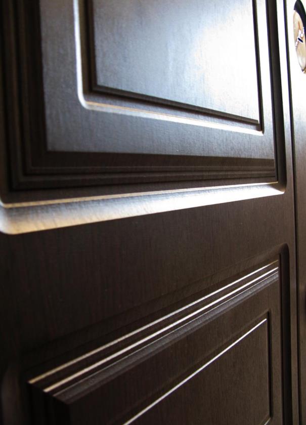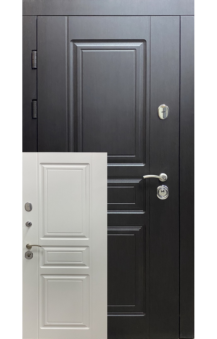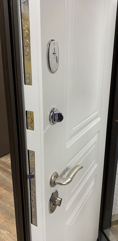 | Фурнітура | 3 петлі, ручка на розетті, нічний засув, ексцентрик, утоплена броненакладка, поріг з нерж. сталі, торець полотна зашитий МДФ |
