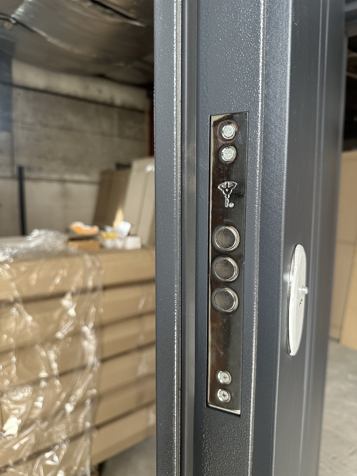 | Фурнітура | 3 петлі, ручка на розетті, ексцентрик, утоплена броненакладка, поріг з нерж. сталі, |