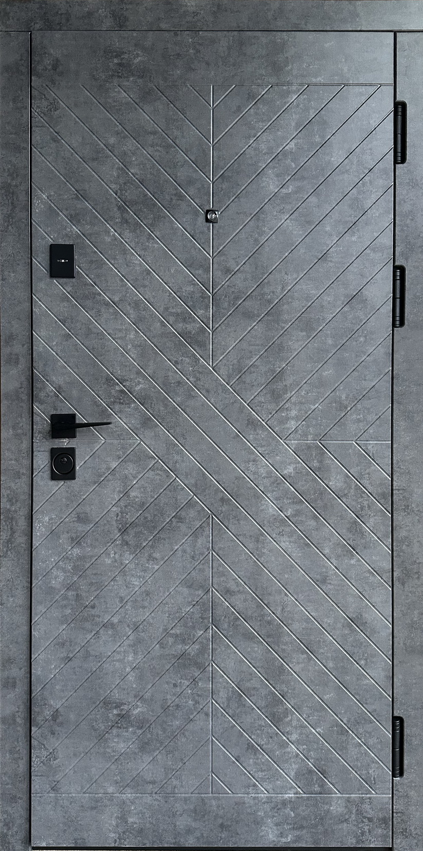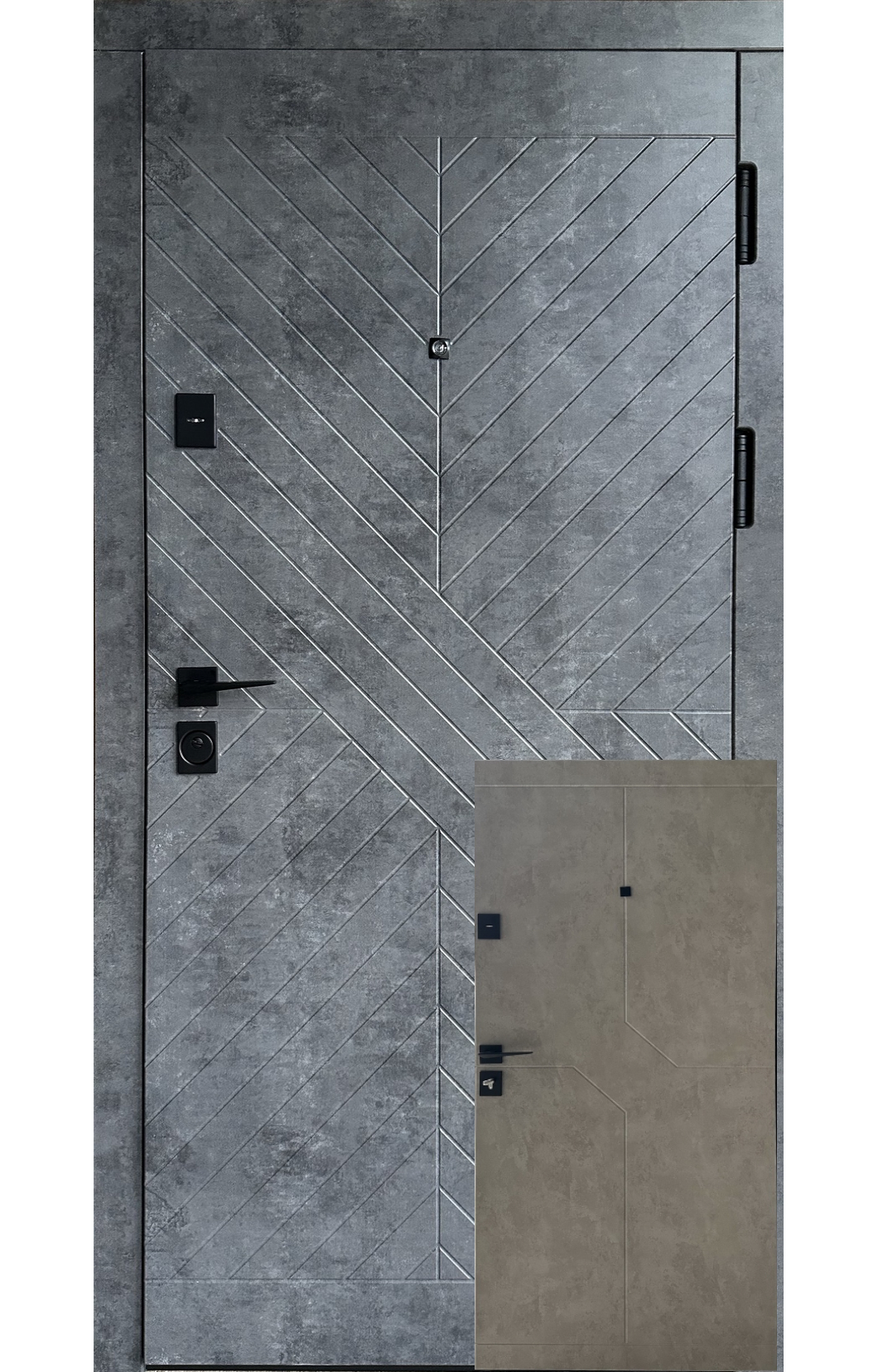 | Фурнітура | 3 зовнішні петлі, вічко, ручка на розетті, . Зворотні планки, чорна фурнітура |
