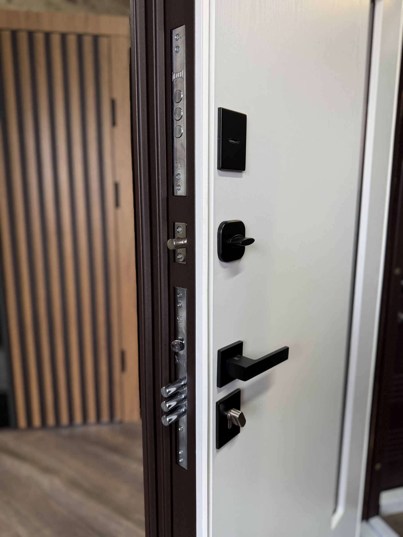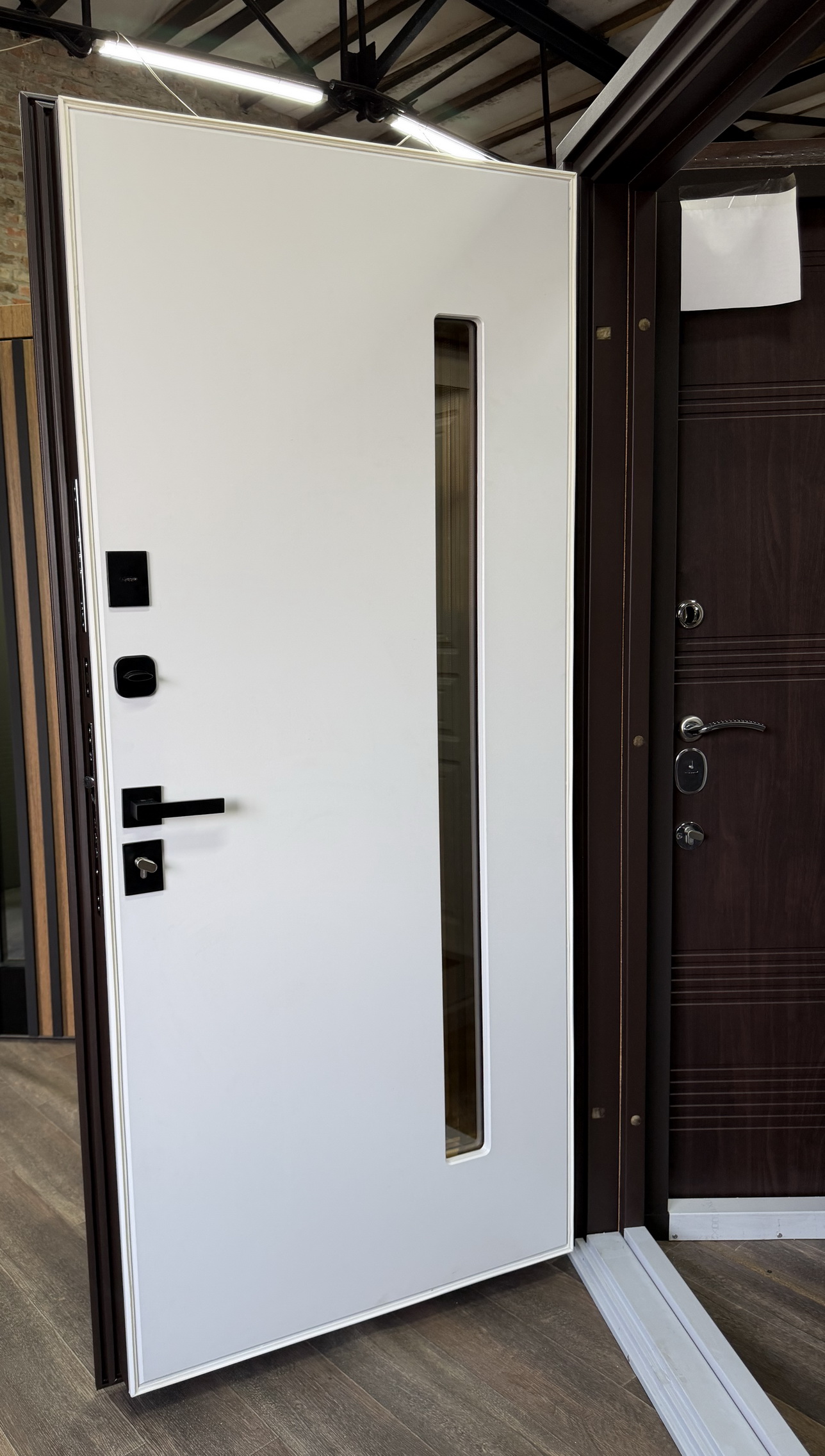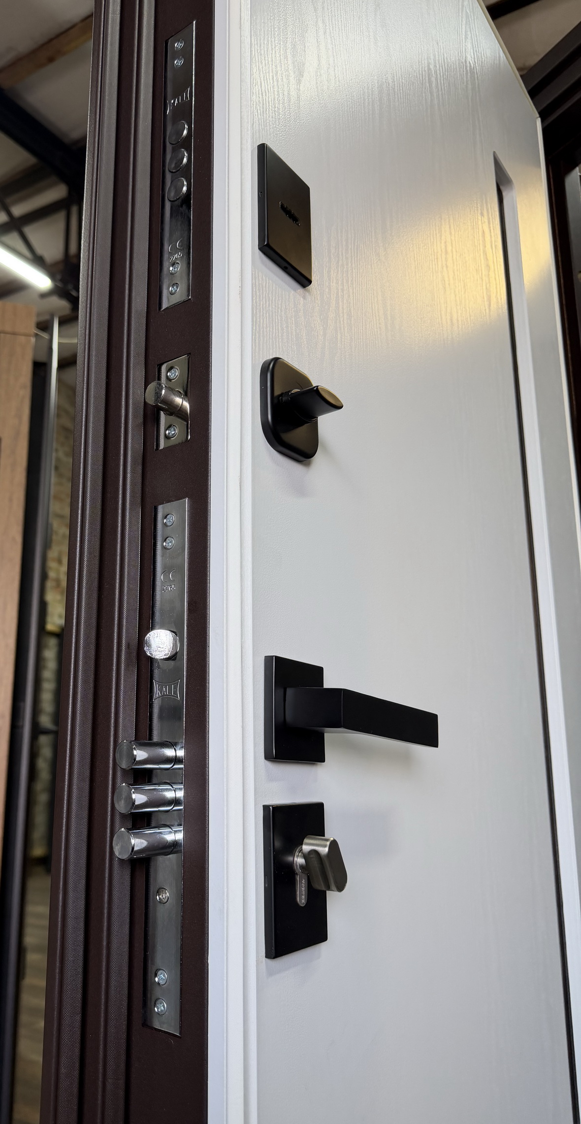 | Фурнітура | 3 петлі, ручка на розетті, ексцентрик, поріг з нержавіючої сталі, нічний засув. чорна фурнітура |