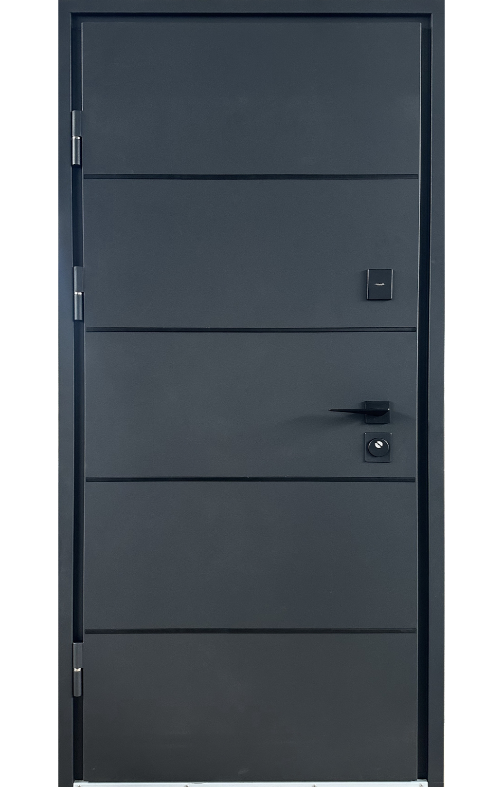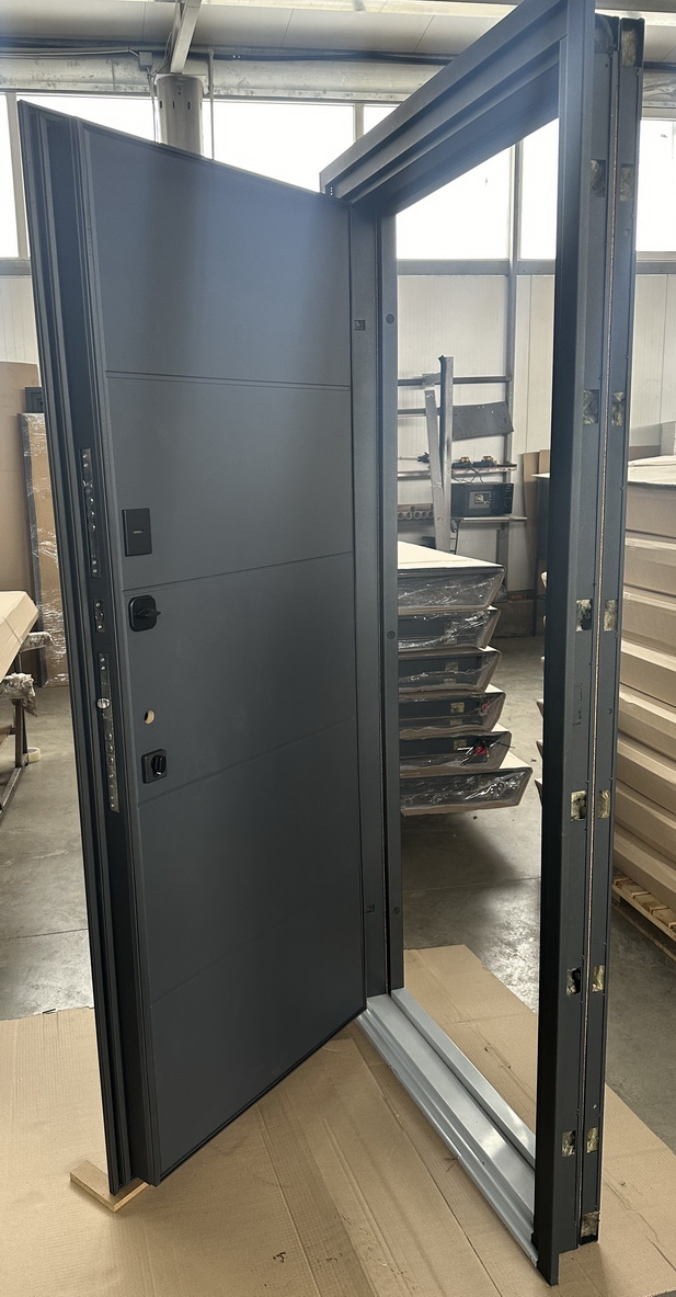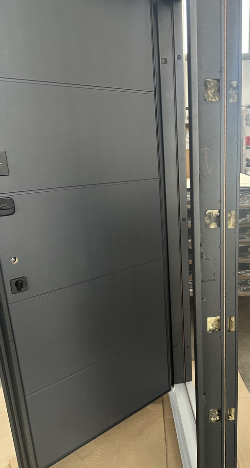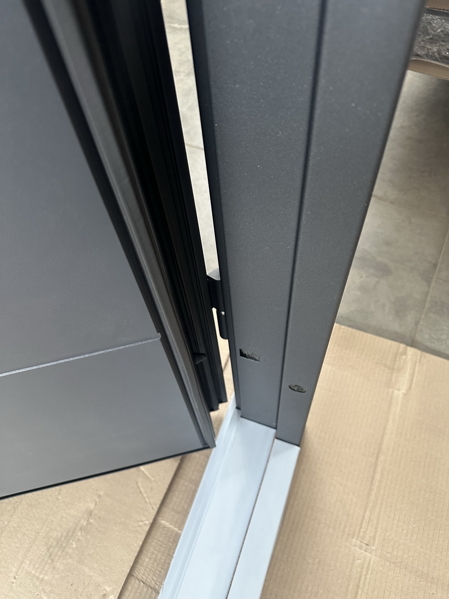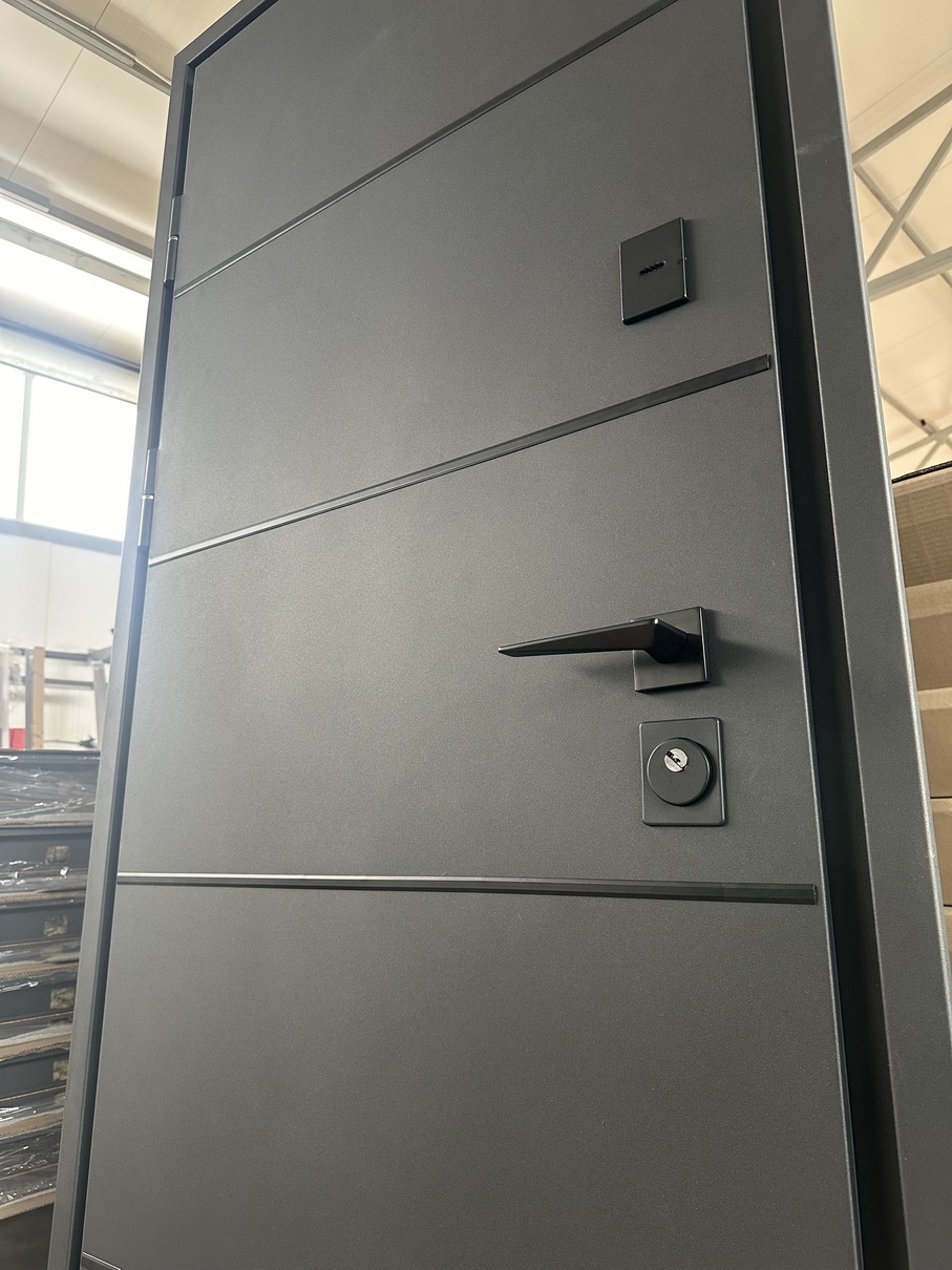 | Фурнітура | 3 петлі, ручка на розетті, ексцентрик, поріг з нержавіючої сталі, нічний засув. чорна фурнітура |