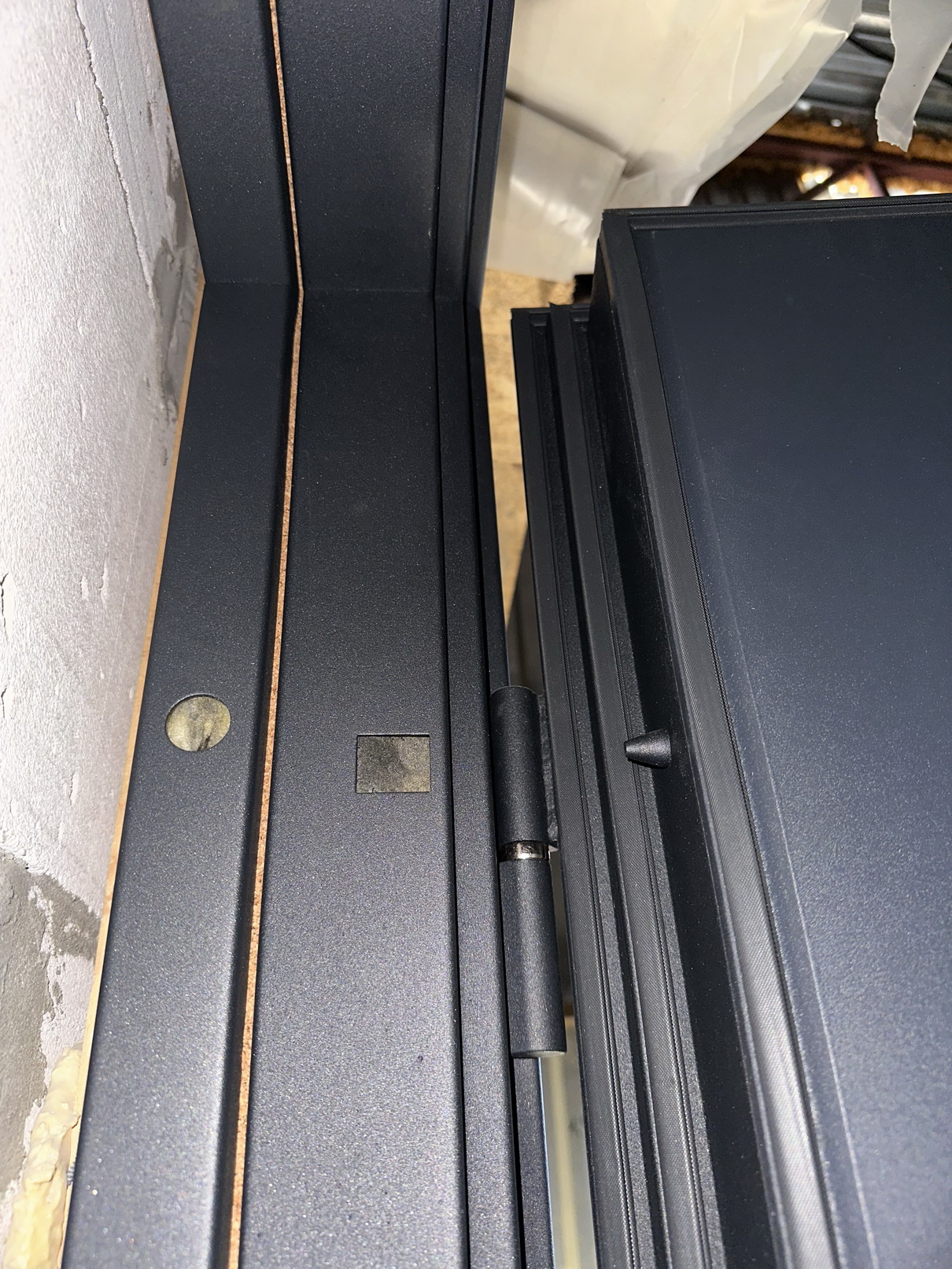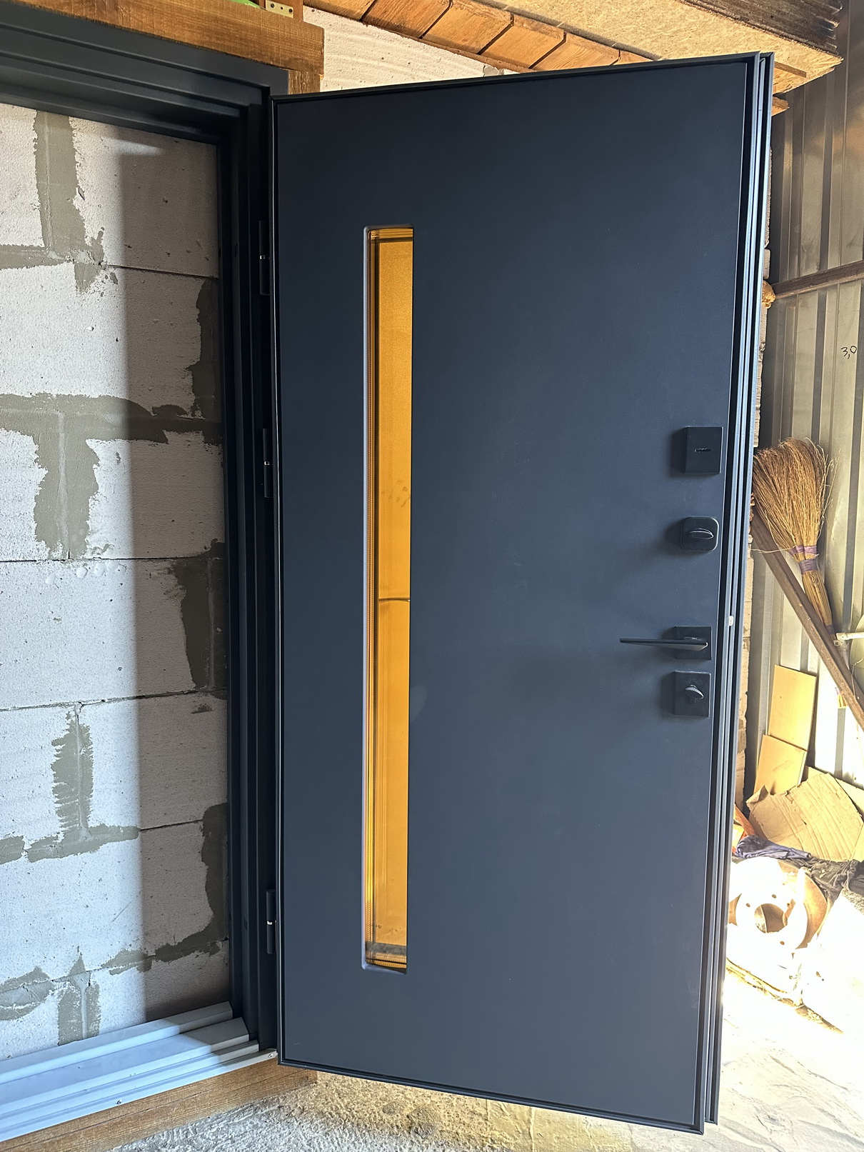 | Фурнітура | 3 петлі, ручка на розетті, ексцентрик, поріг з нержавіючої сталі, нічний засув. чорна фурнітура |